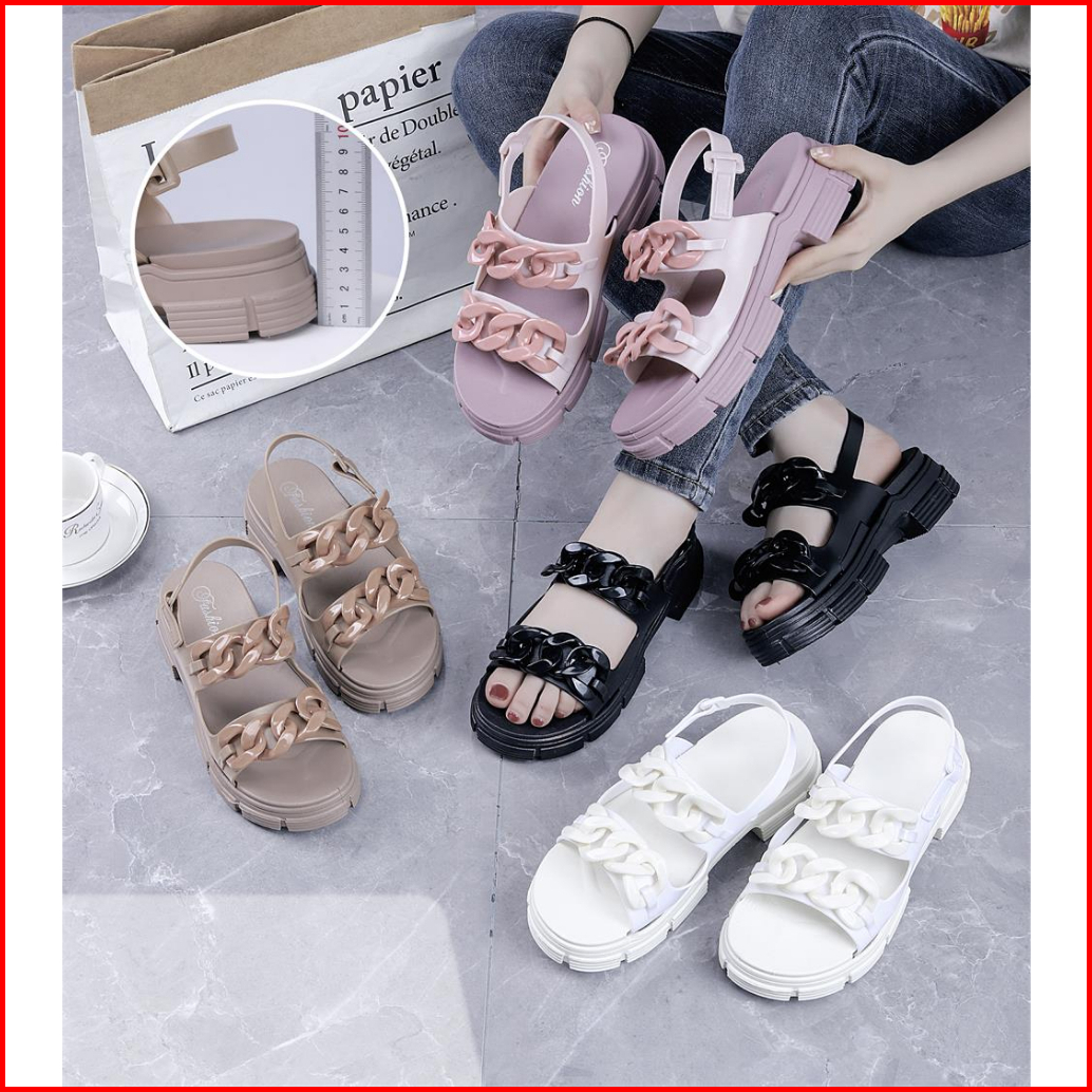Cys Sandal Platform Wanita Model Fuji Wedges Selop Tali Jelly Sol Tebal Korea Spt-83