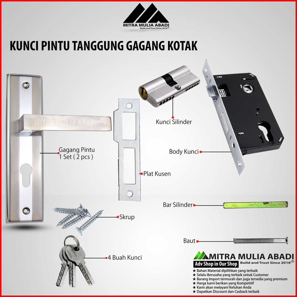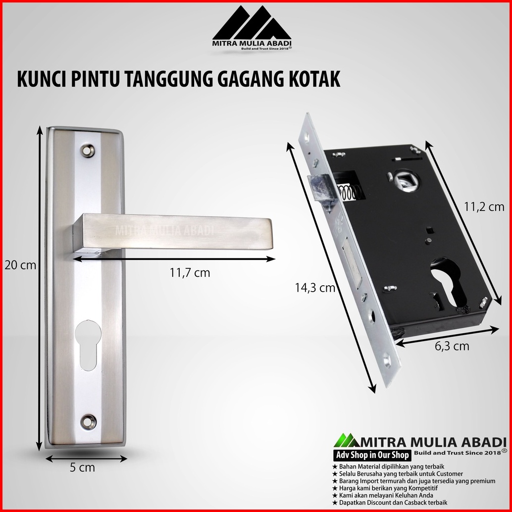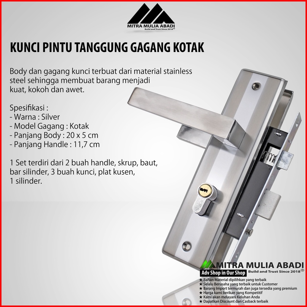 Kunci Pintu Top M-class Set Komplit Silver 20cm Gagang Kotak Kunci Pintu Sedang Top M-class Kunci Pintu Gagang Kotak Kom