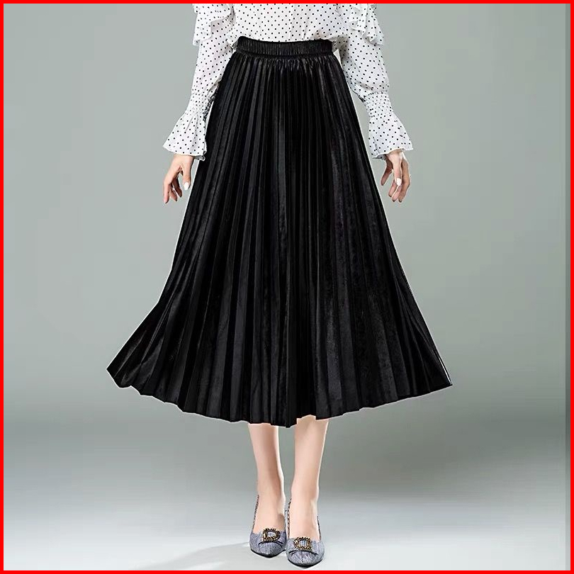 Rok Plisket Velvet Bludru Pendek 7 8 Rok Maxi Bludru Pendek Velvet Bludru Maxi Skirt