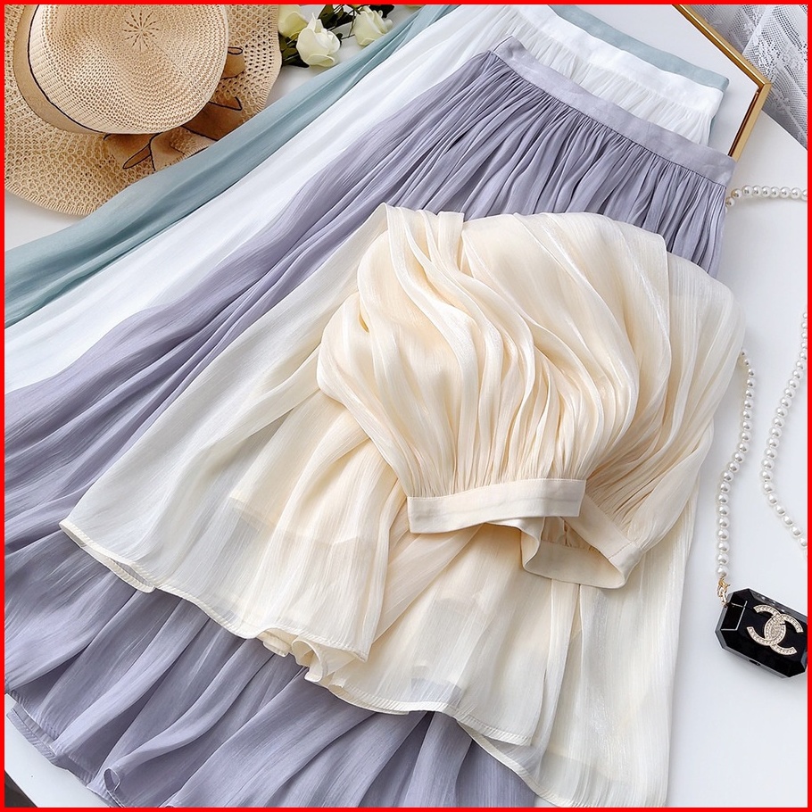 Ready90cm Shimmer Skirt Rok Plisket Premium Rok Plisket Glossy Rok Plisket Gliter Rok Hijab Rok Anggun Rok