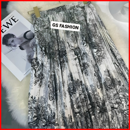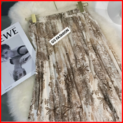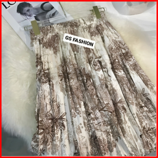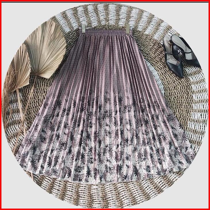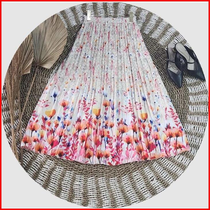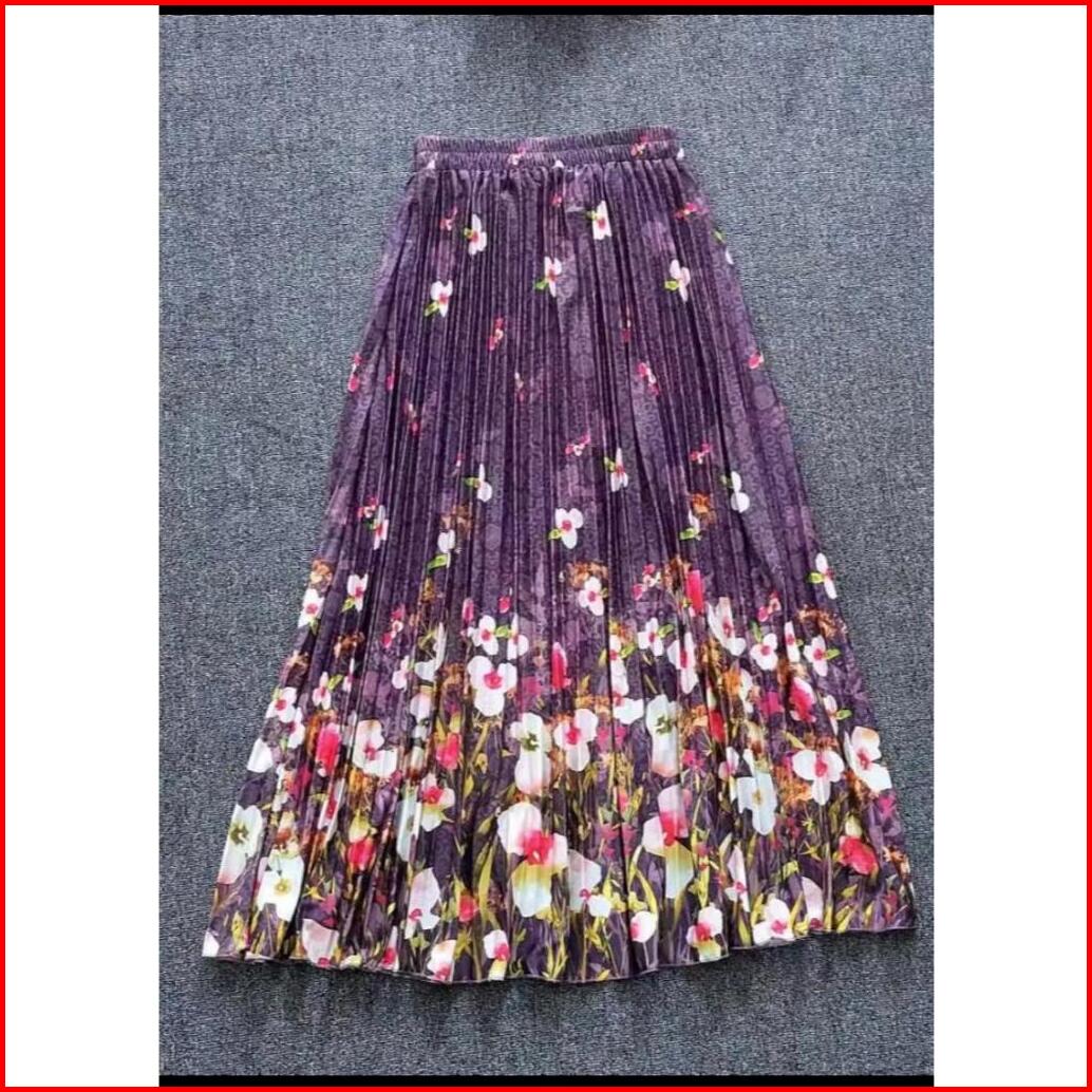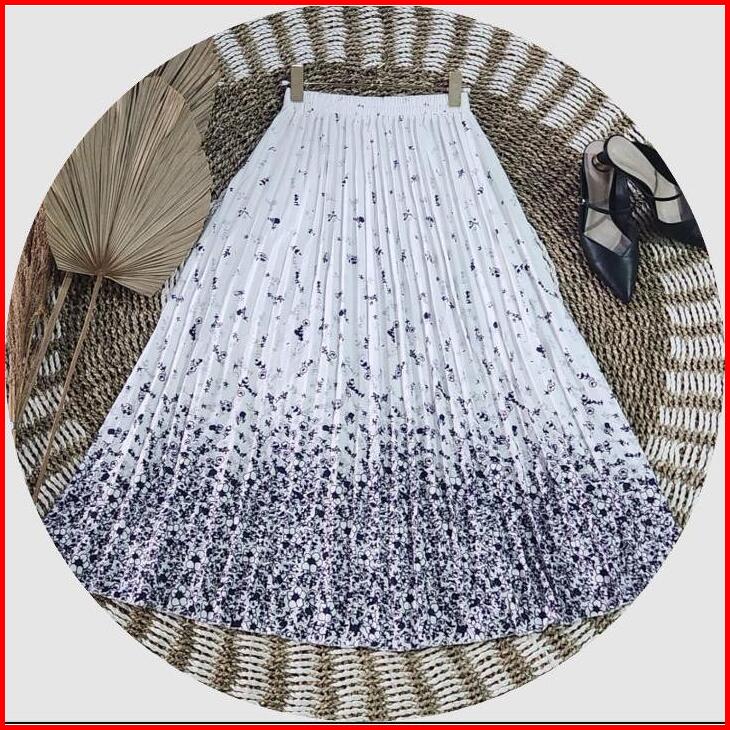 Gs- Rok Plisket Panjang Motif Bunga Premium Rok Plisket Wanita Rok Plisket Bunga Rok Plisket Muslim Rok Rempal Rok Maxy
