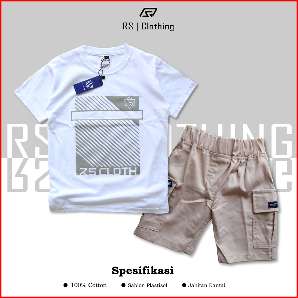 Rsclothing.id Setelan Baju Anak Laki-laki Setelan Celana Pendek Cargo Anak Usia 4-11 Tahun