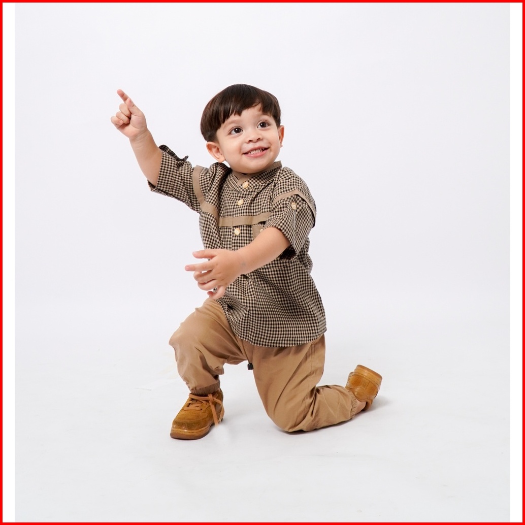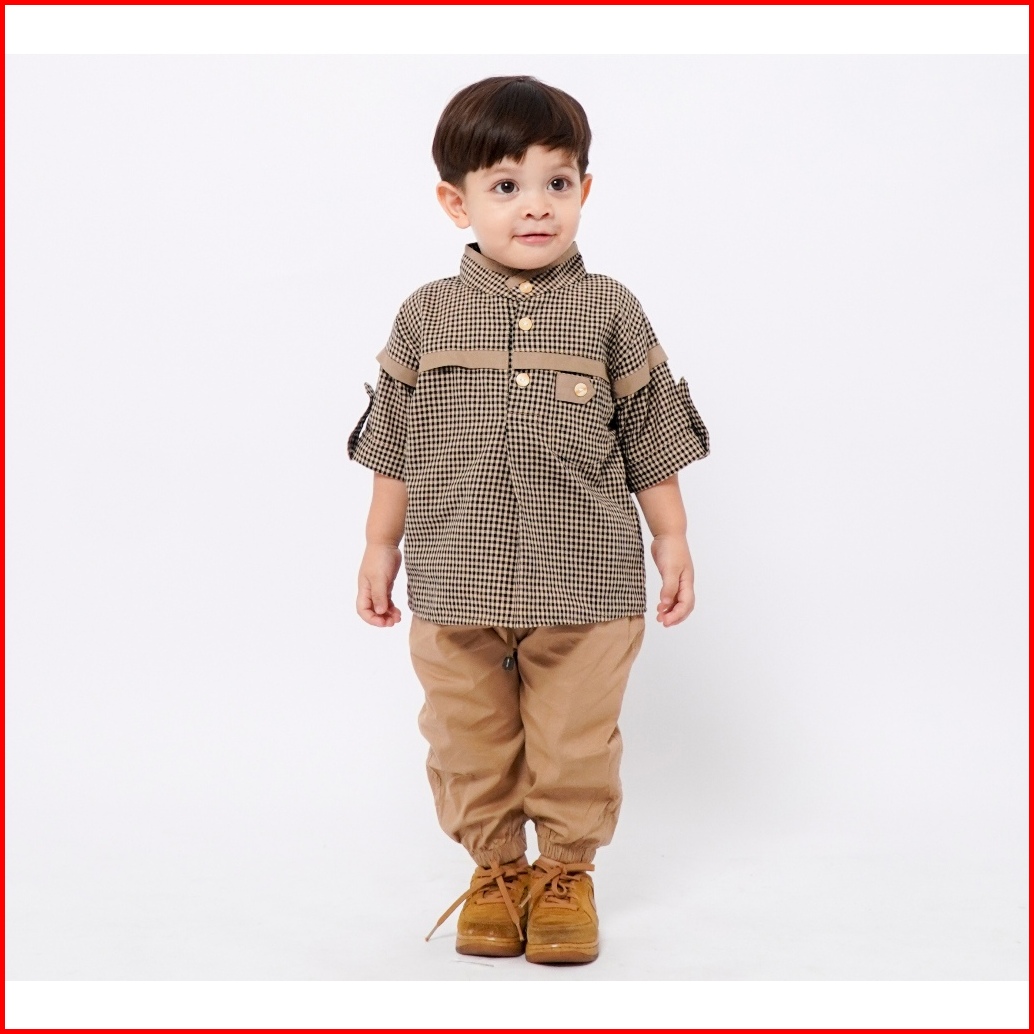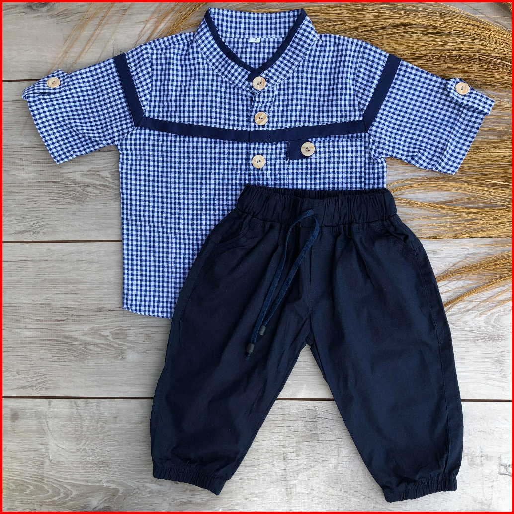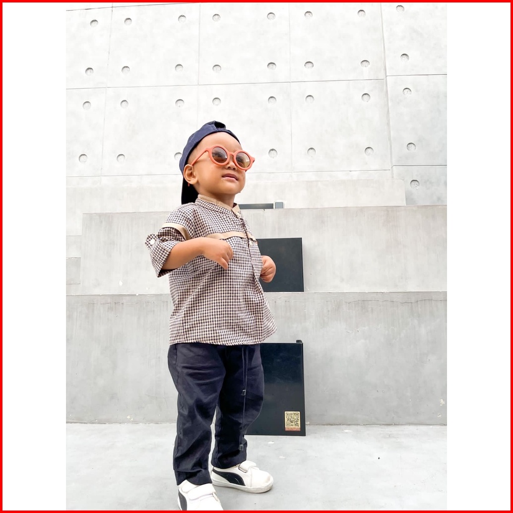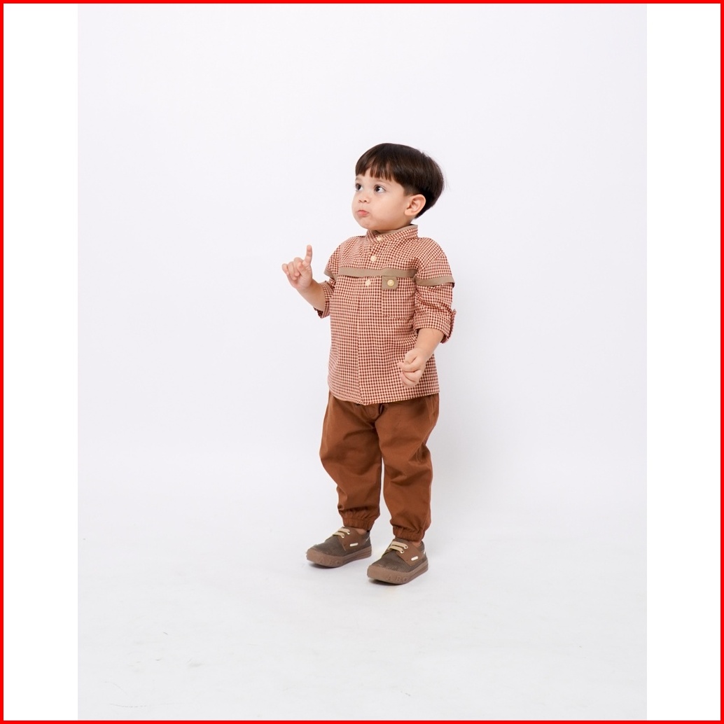 Setelan Kemeja Anak Lengan Panjang Kotak-kotak Setelan Baju Anak Laki-laki Kiandra Usia 1-6 Tahun Bahan Katun