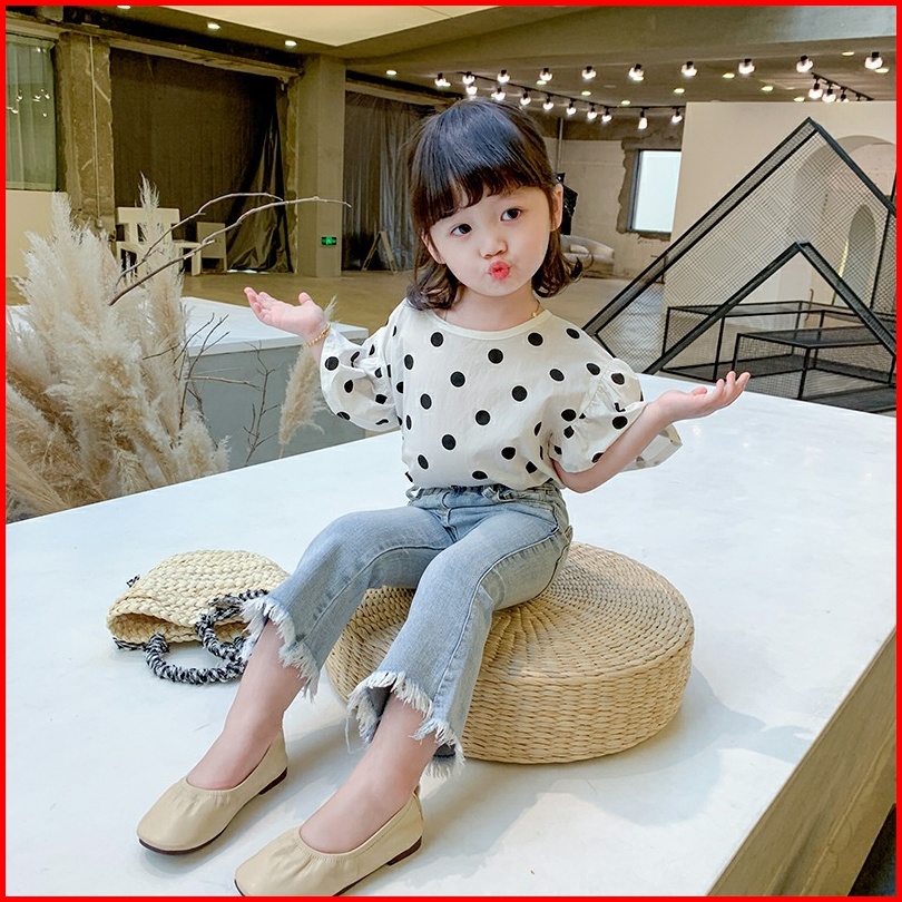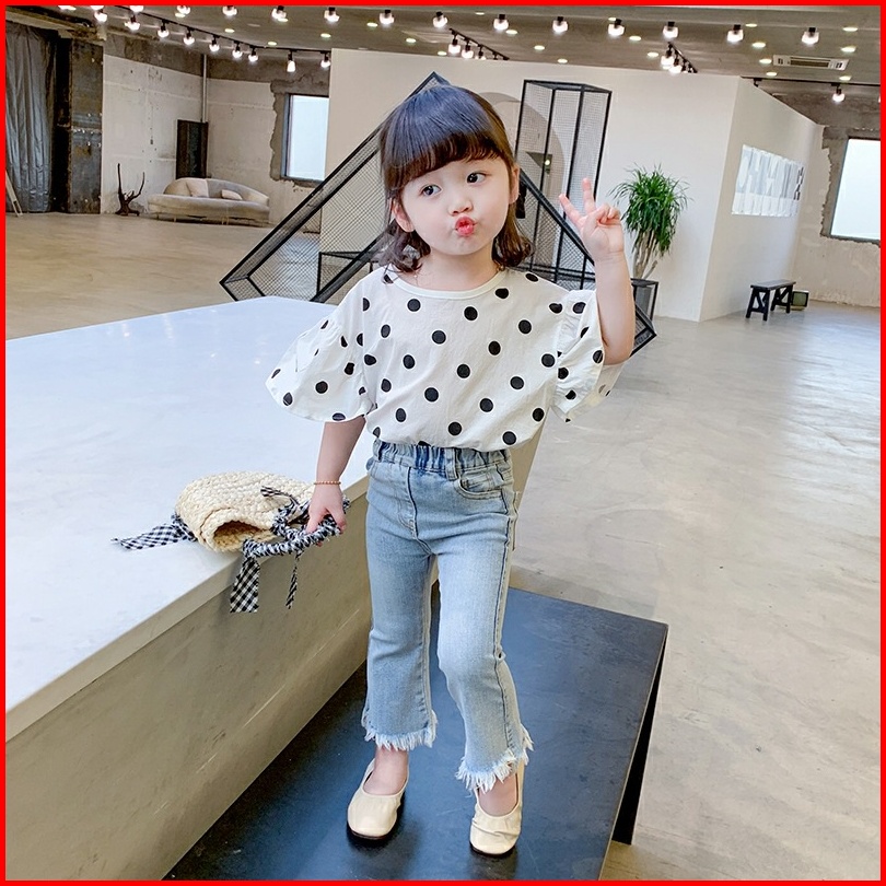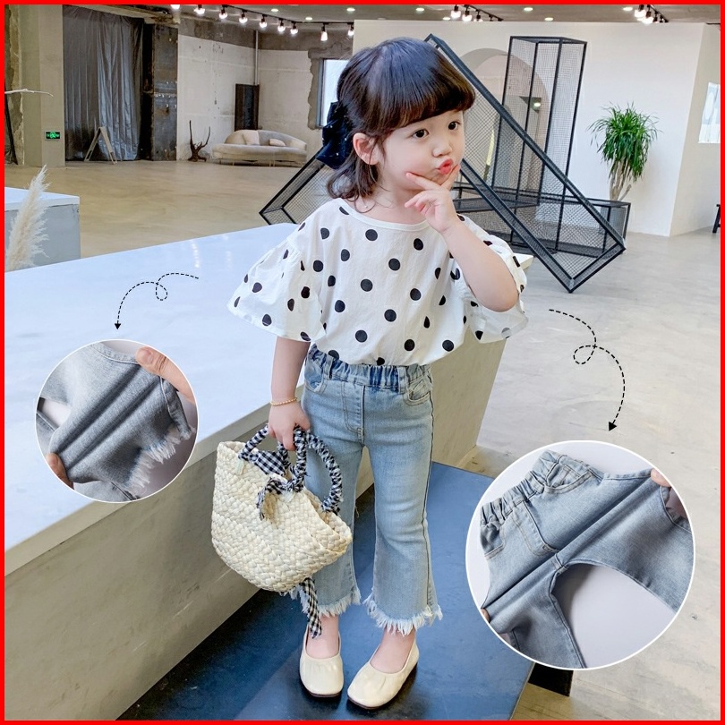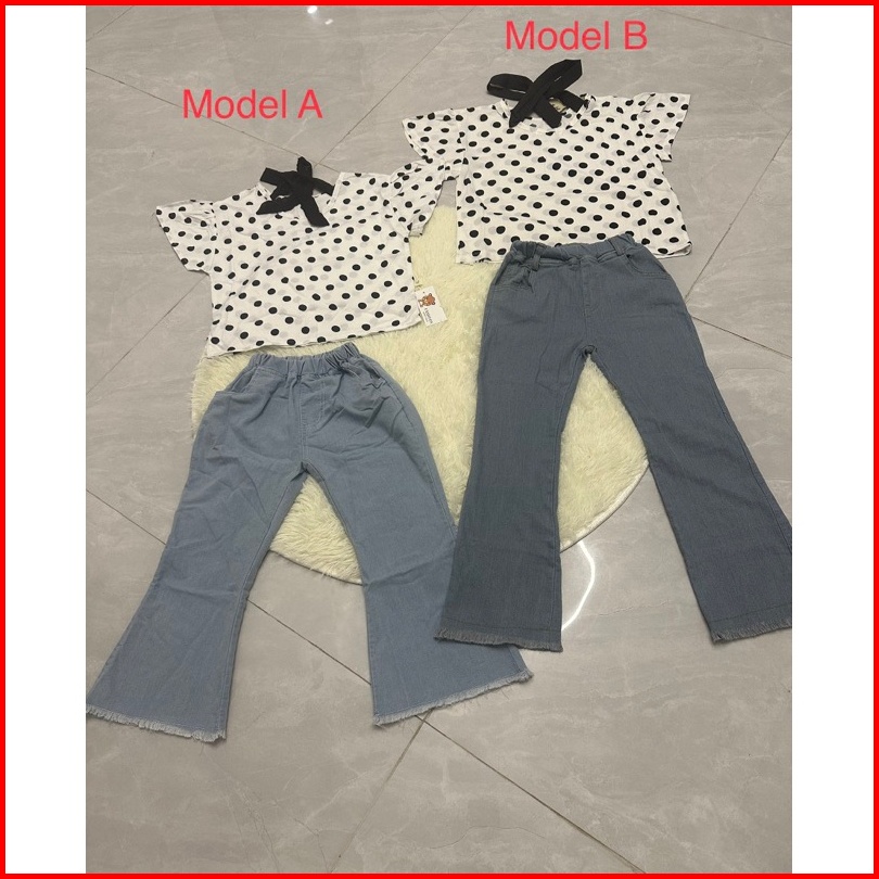 Cbj Setelan Set Anak Perempuan Model Terbaru Dot Htiam Stelan Anak Import Baju Polkadot Celana Jeans Anak Cewek
