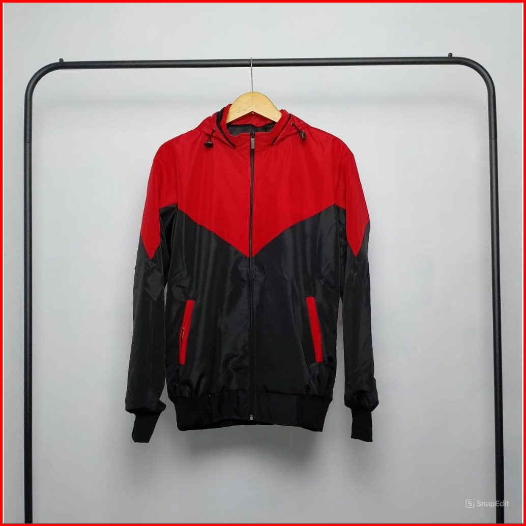 Jaket Parasut Kombinasi Maroon Hitam Kupluk Hyget