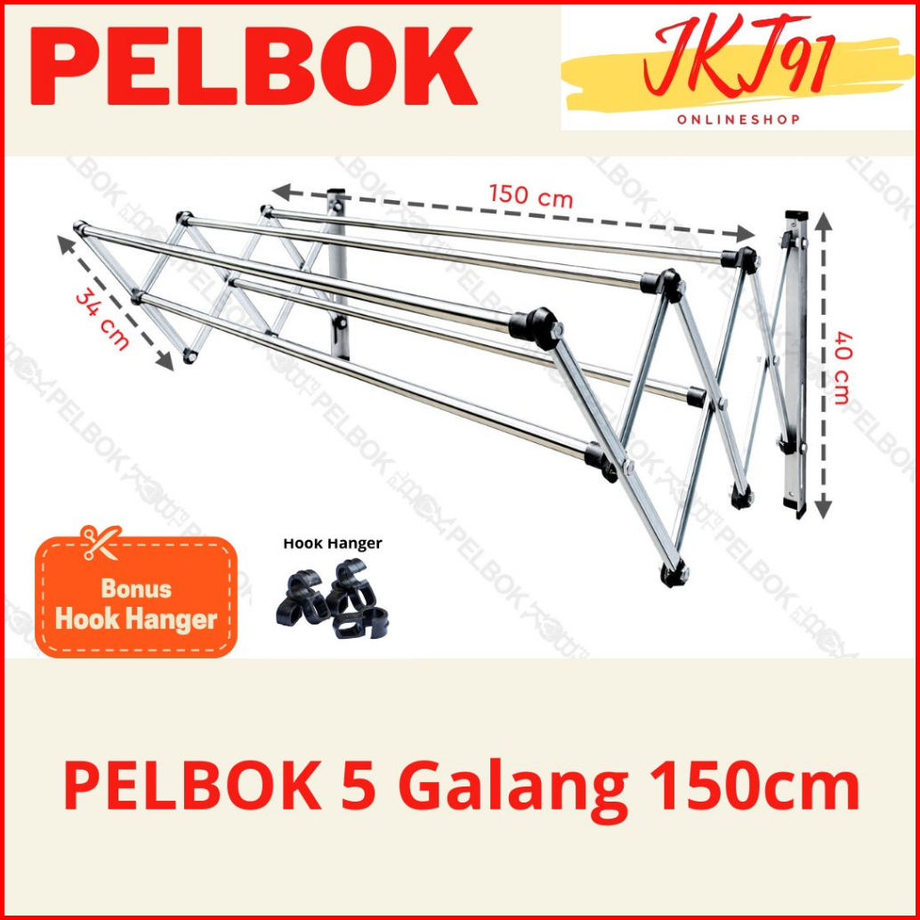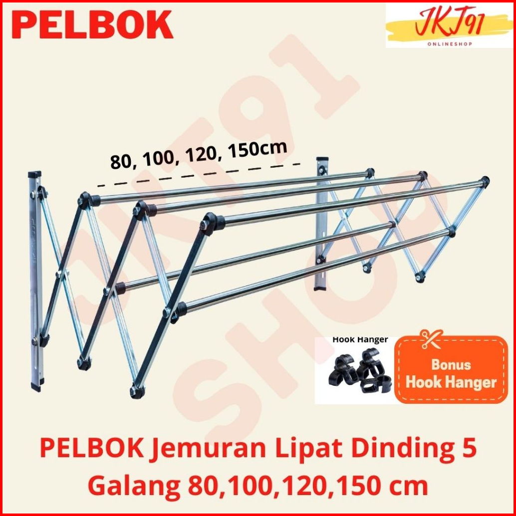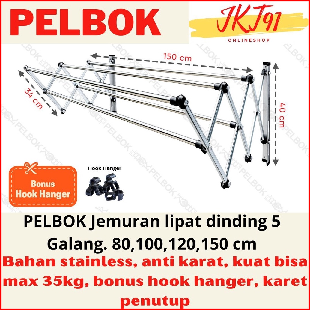 Plbok Double Jemuran Baju Pakaian Dinding Lipat Stainless Steel Rak Jemuran Baju 80 100 120 150