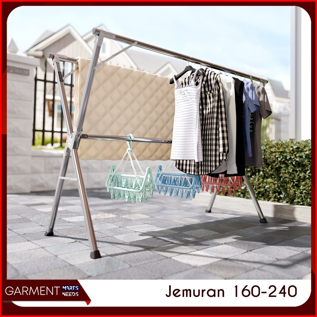 Jem Jmr - Jemuran Baju Handuk Outin Lipat Tekuk Kuat Anti Karat Tebal