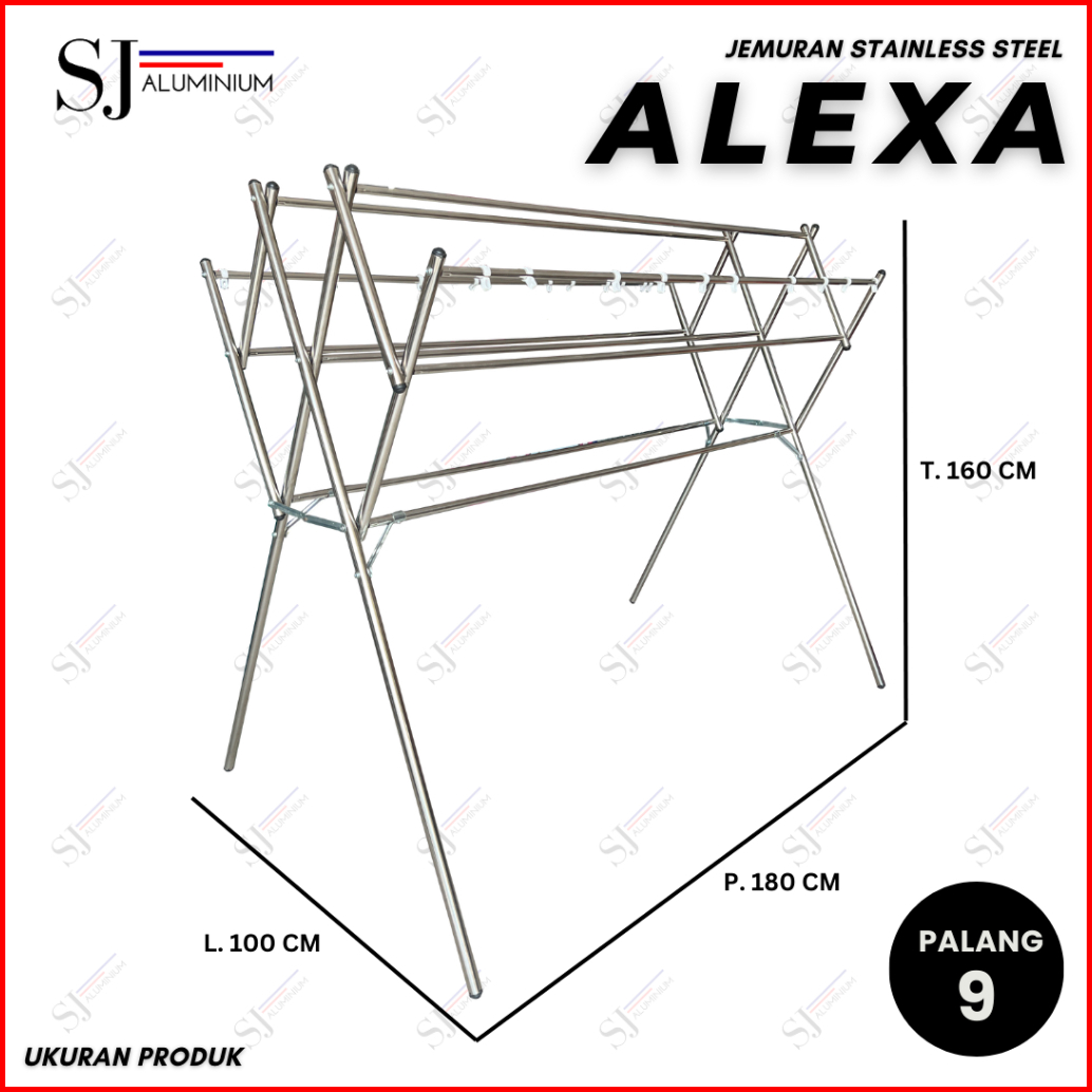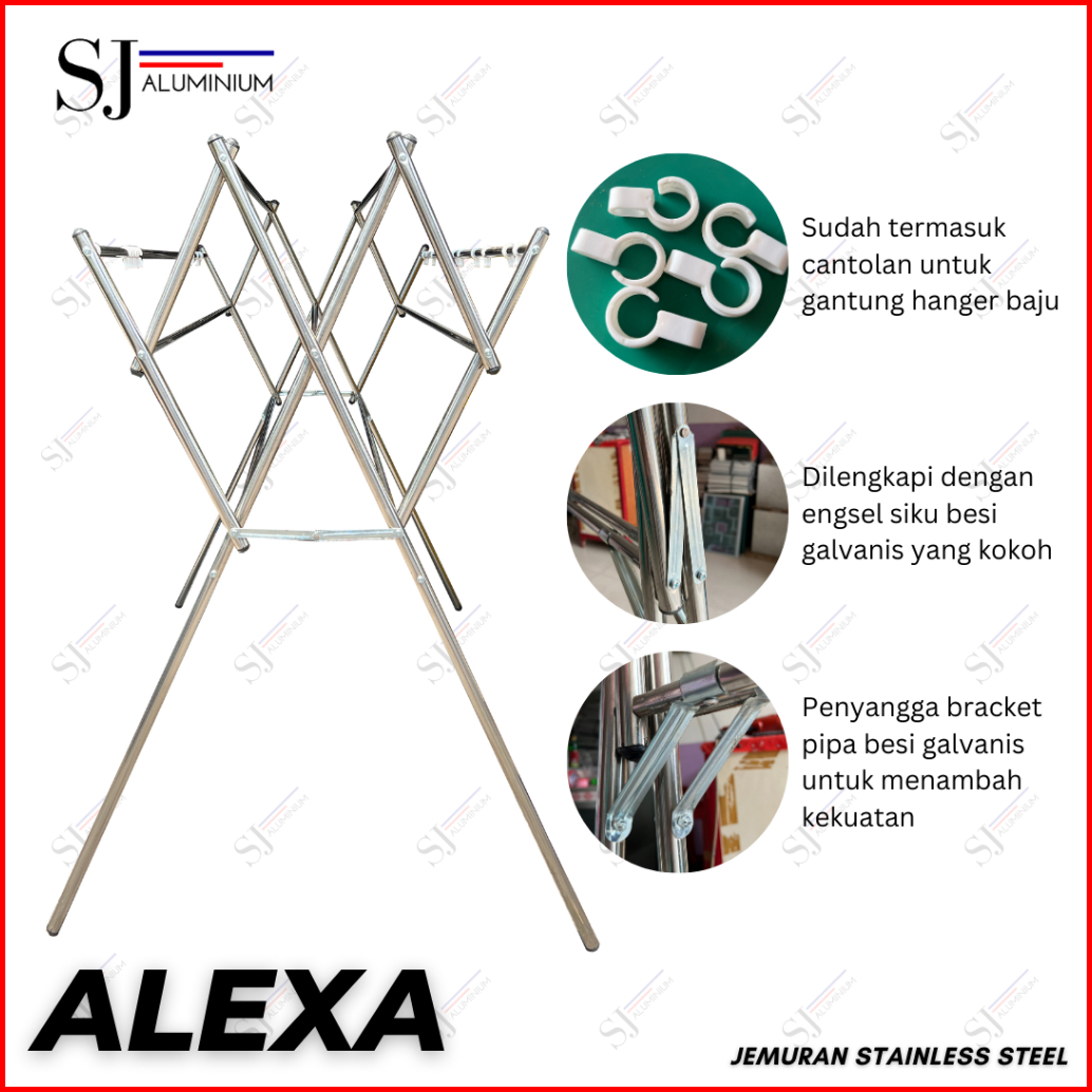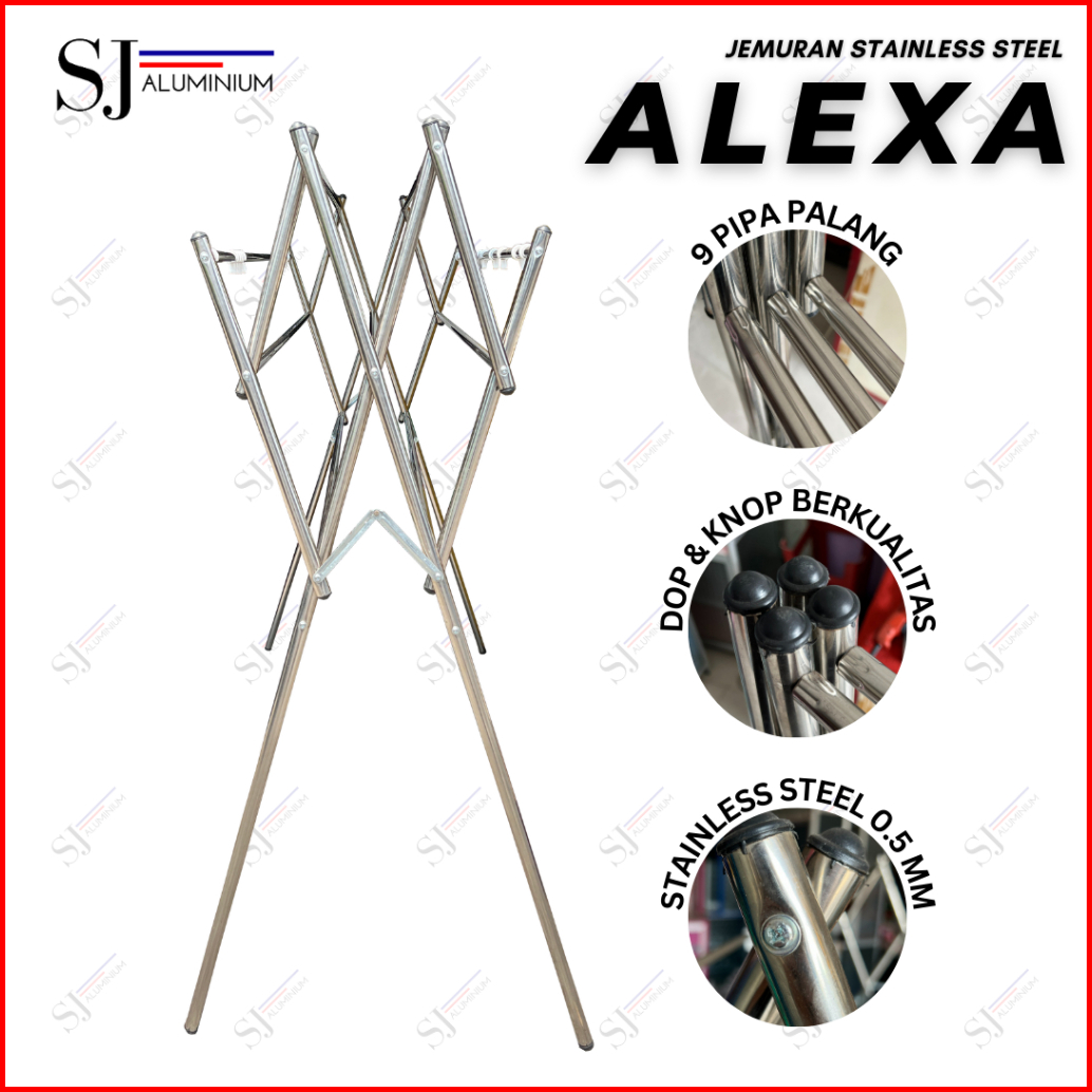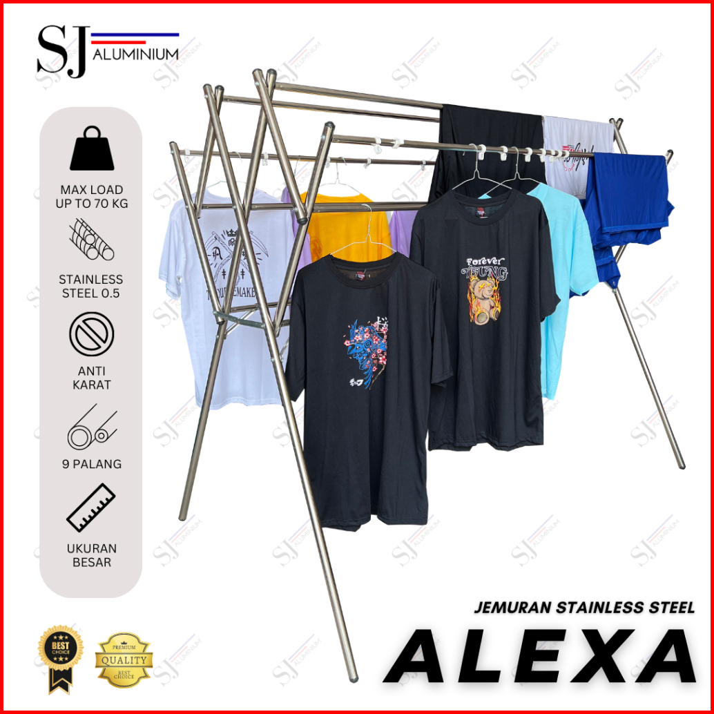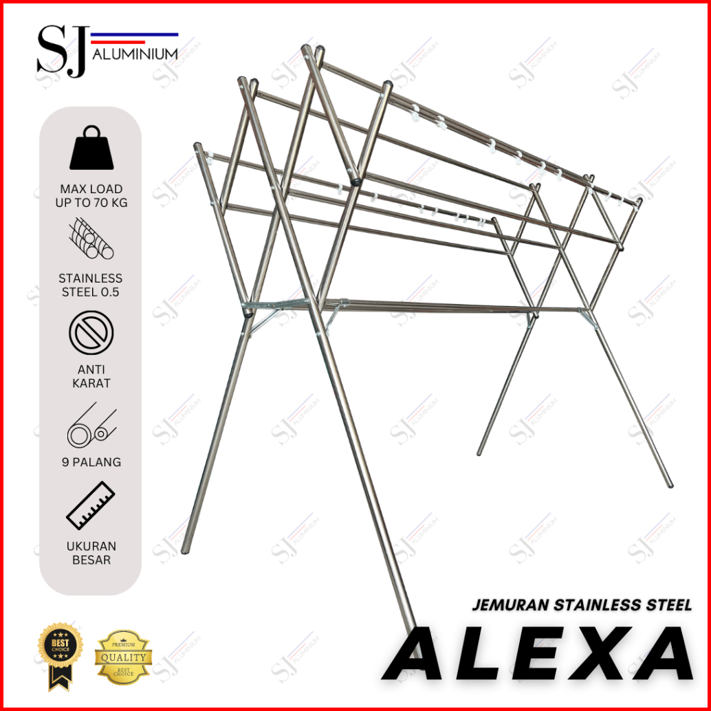 Alexa - Jemuran Stainless Steel Lipat Jemuran Baju Jemuran Pakaian Jemuran Rak Handuk Bayi - Jumbo 180 Cm