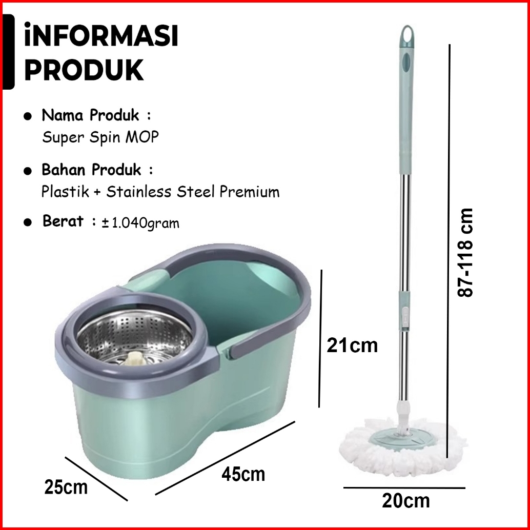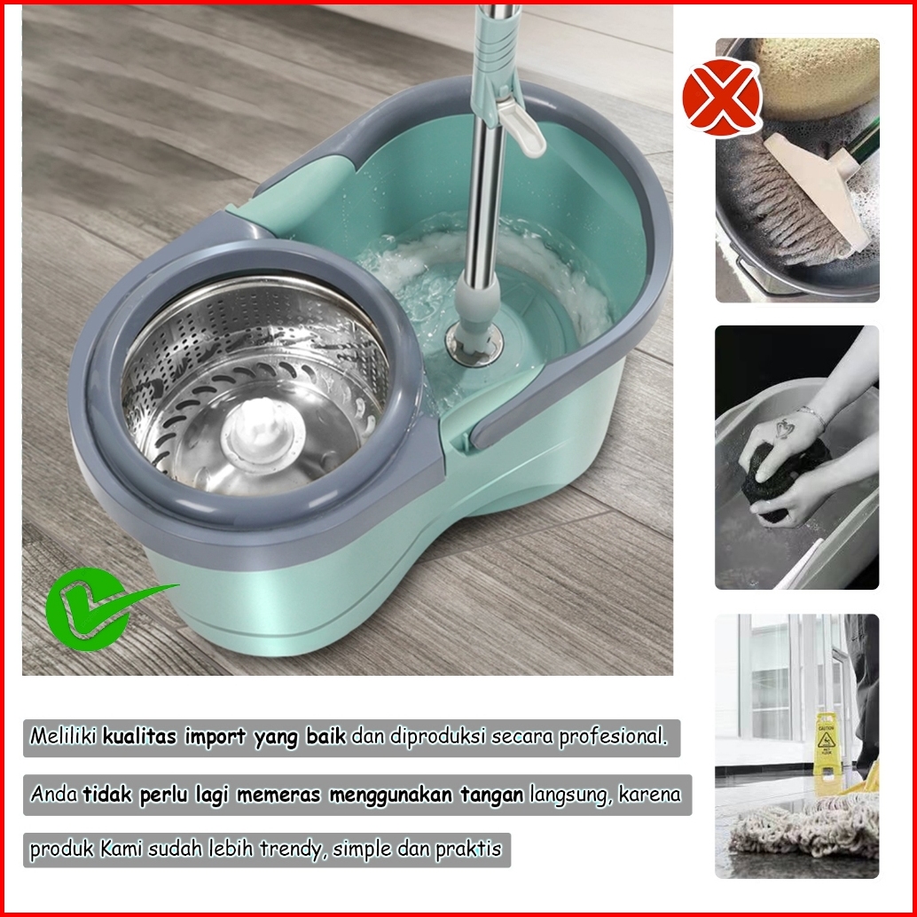 Alat Pel Putar Alat Pel Stainless Steel Alat Pel Praktis Set Alat Pel Lantai Putar Otomatis Spin Mop Super Mop Tb-2 - Me