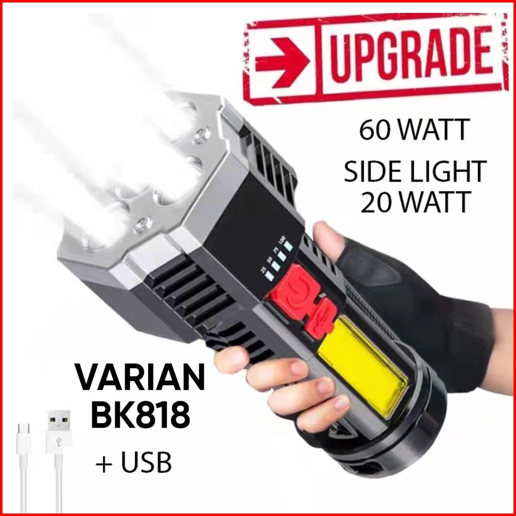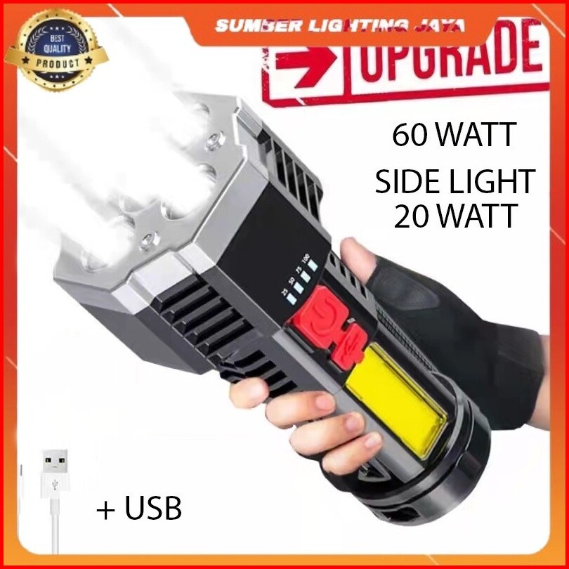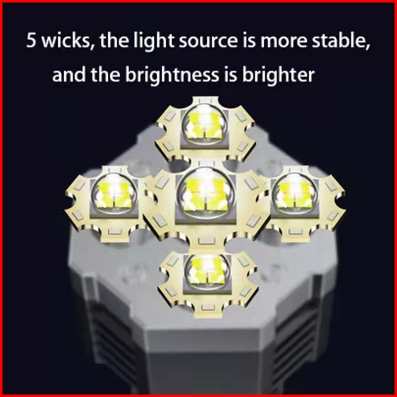 Ready Stok Senter Led 5 Mata 60w 20w Super Terang Senter Cas Led