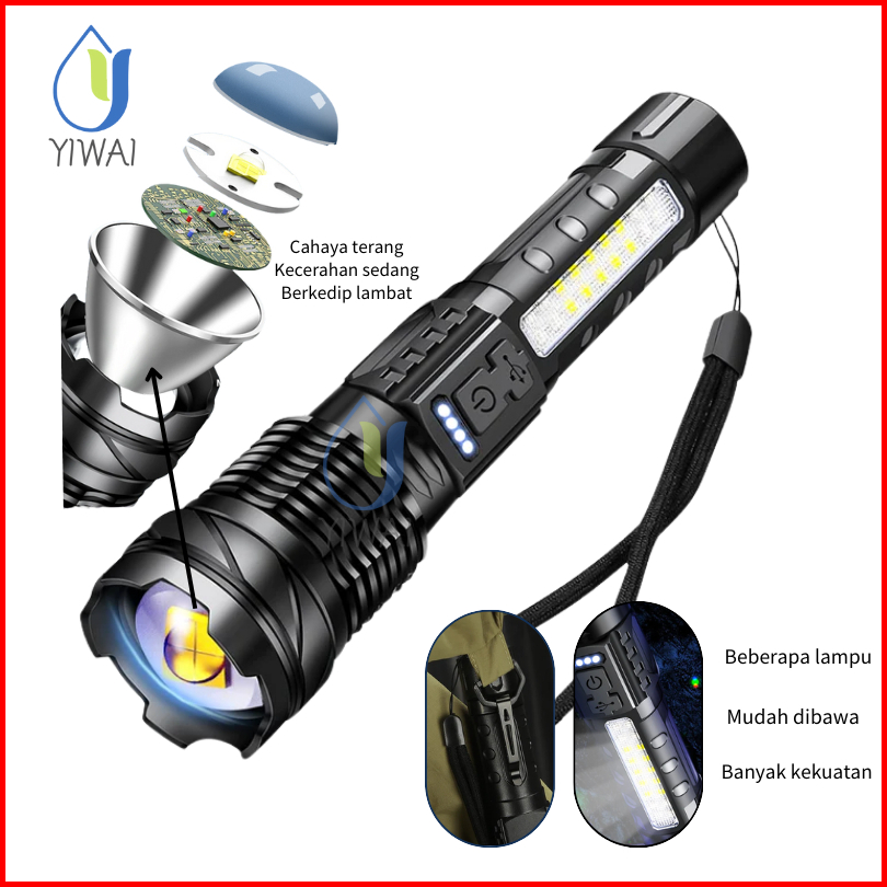 Senter Swat Police Terbaik Senter Led A76 Jarak Jauh 7 Mode Cahaya Senter Cas Usb