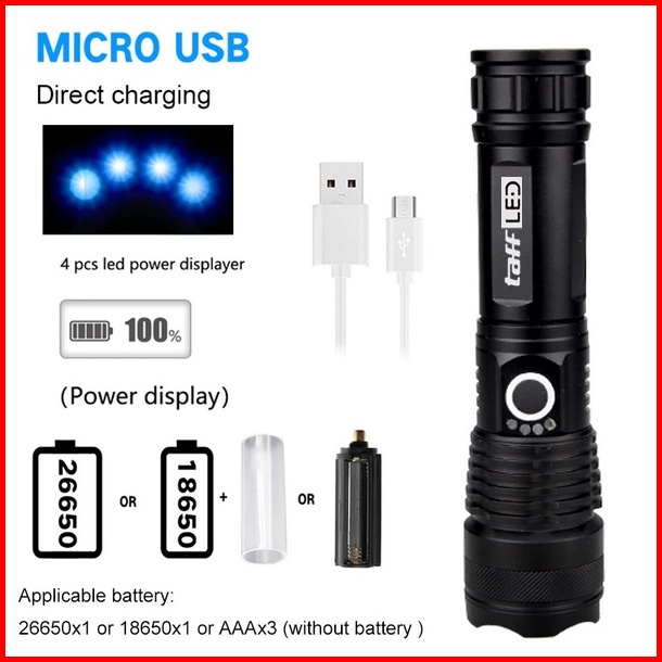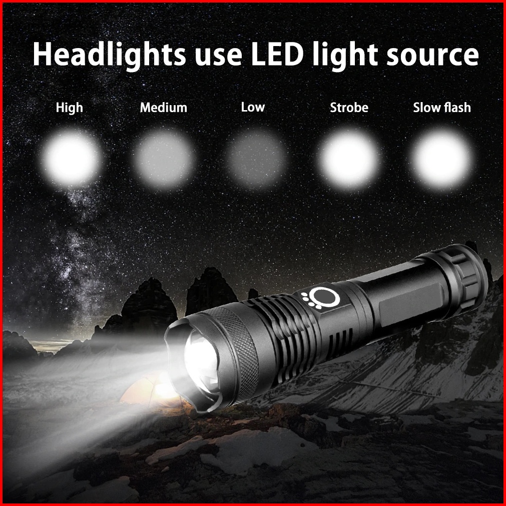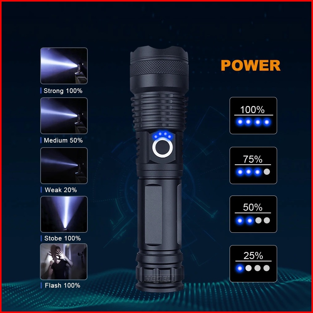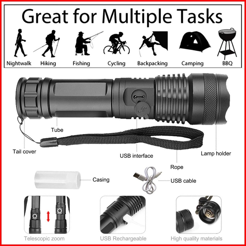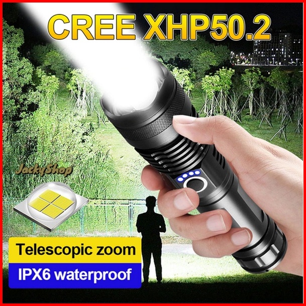 Senter Xhp50 Sangat Terang Adjustable Flashlight Rechargeable Led 18650 Or 26650 Battery Zoomable