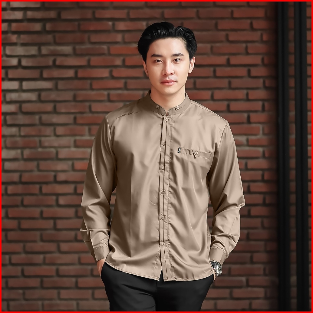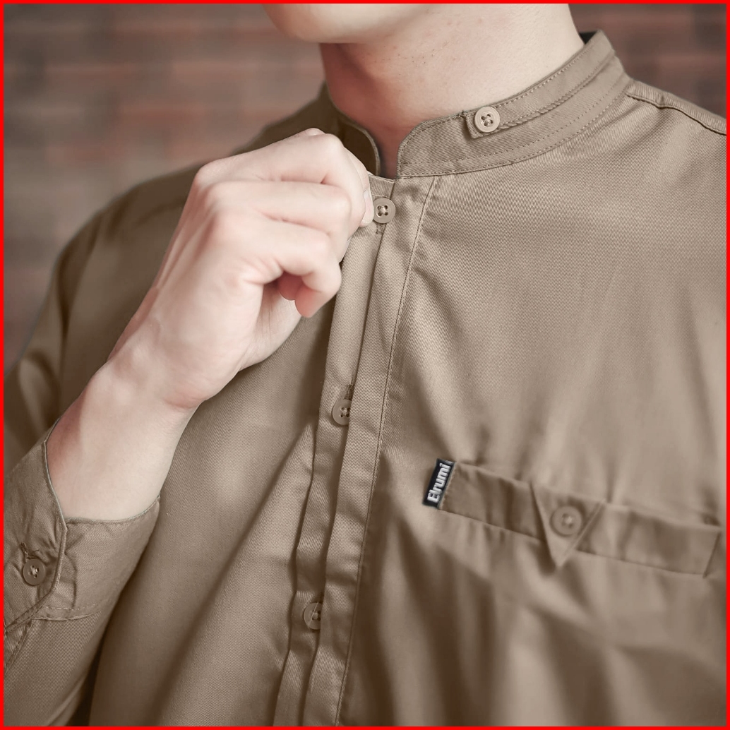 Kemeja Koko Lengan Panjang Pria Elrumi Motif Antasena Warna Coklat