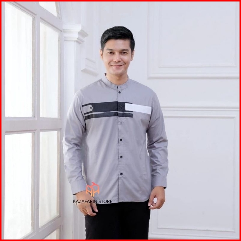 Baju Koko Pria Lengan Panjang Motif Yordan Kombinasi Warna