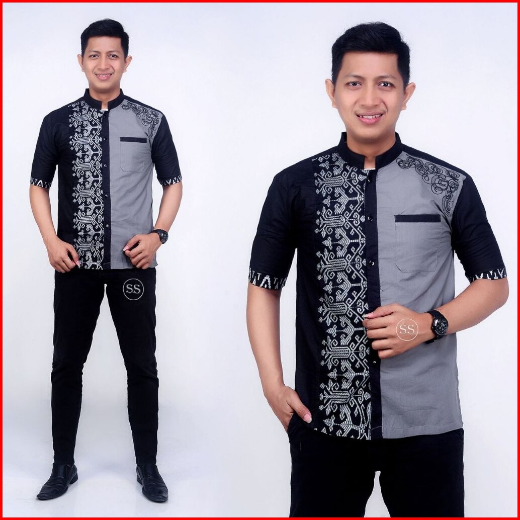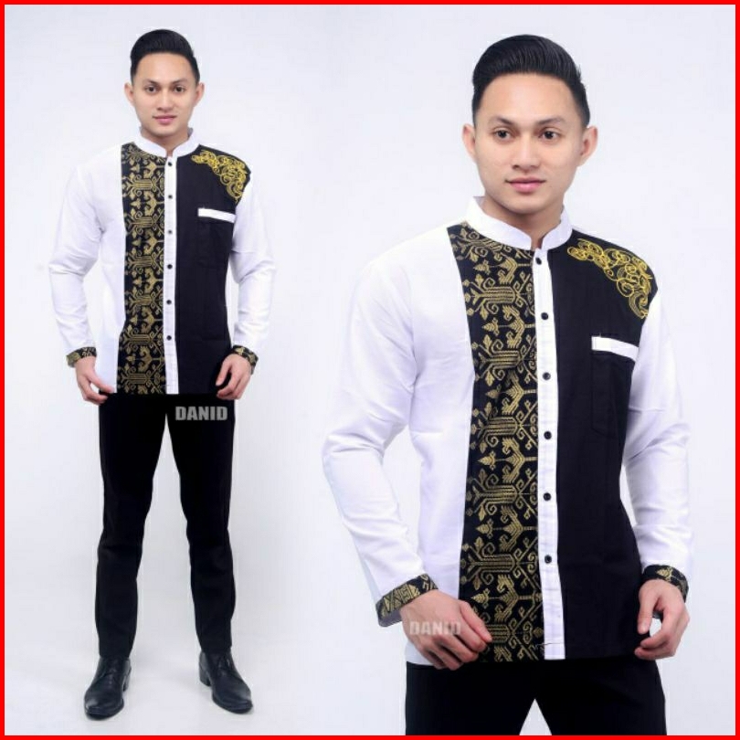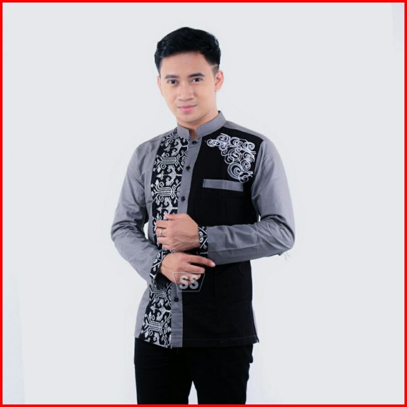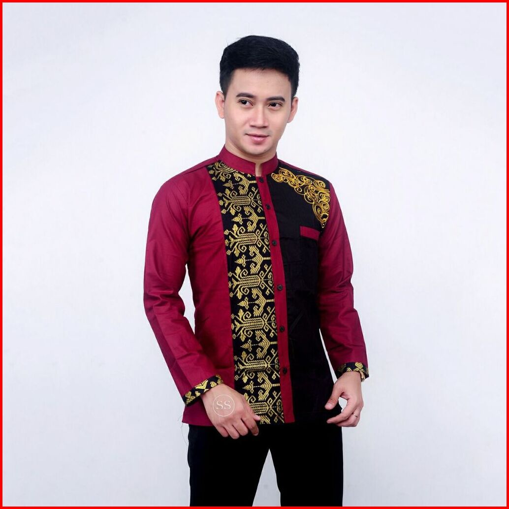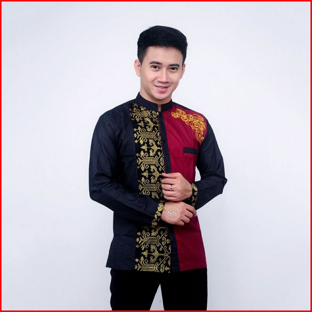 Baju Koko Bordil Modern Kombinasi Batik Lengan Panjang-terbaru Dan Paling Di Cari Terlaris
