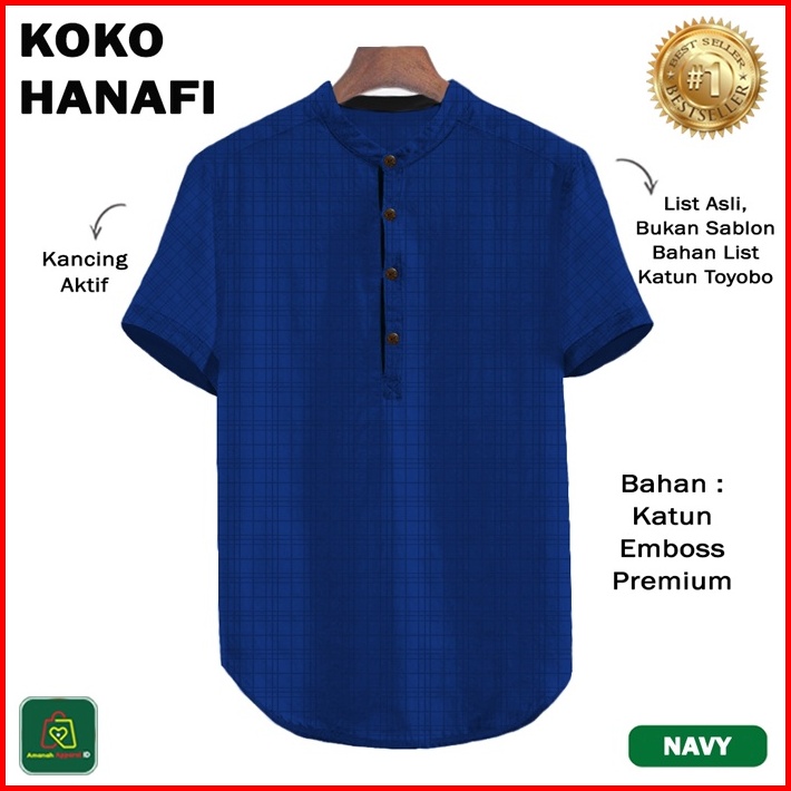 Baju Koko Pria Muslim Koko Hanafi Jumbo Bahan Katun Embos Size M - Xxl Terbaru 26432 26434 26436 26438