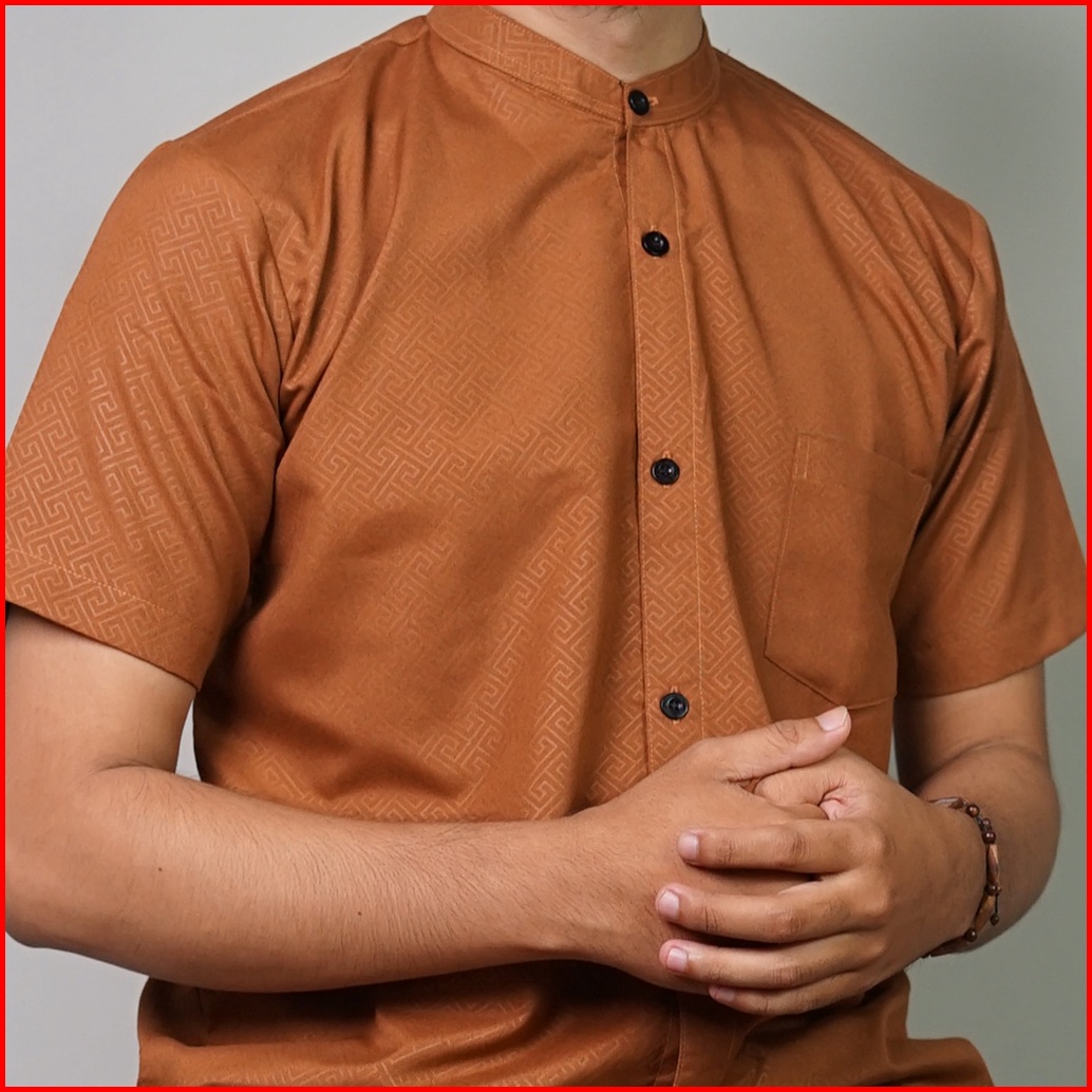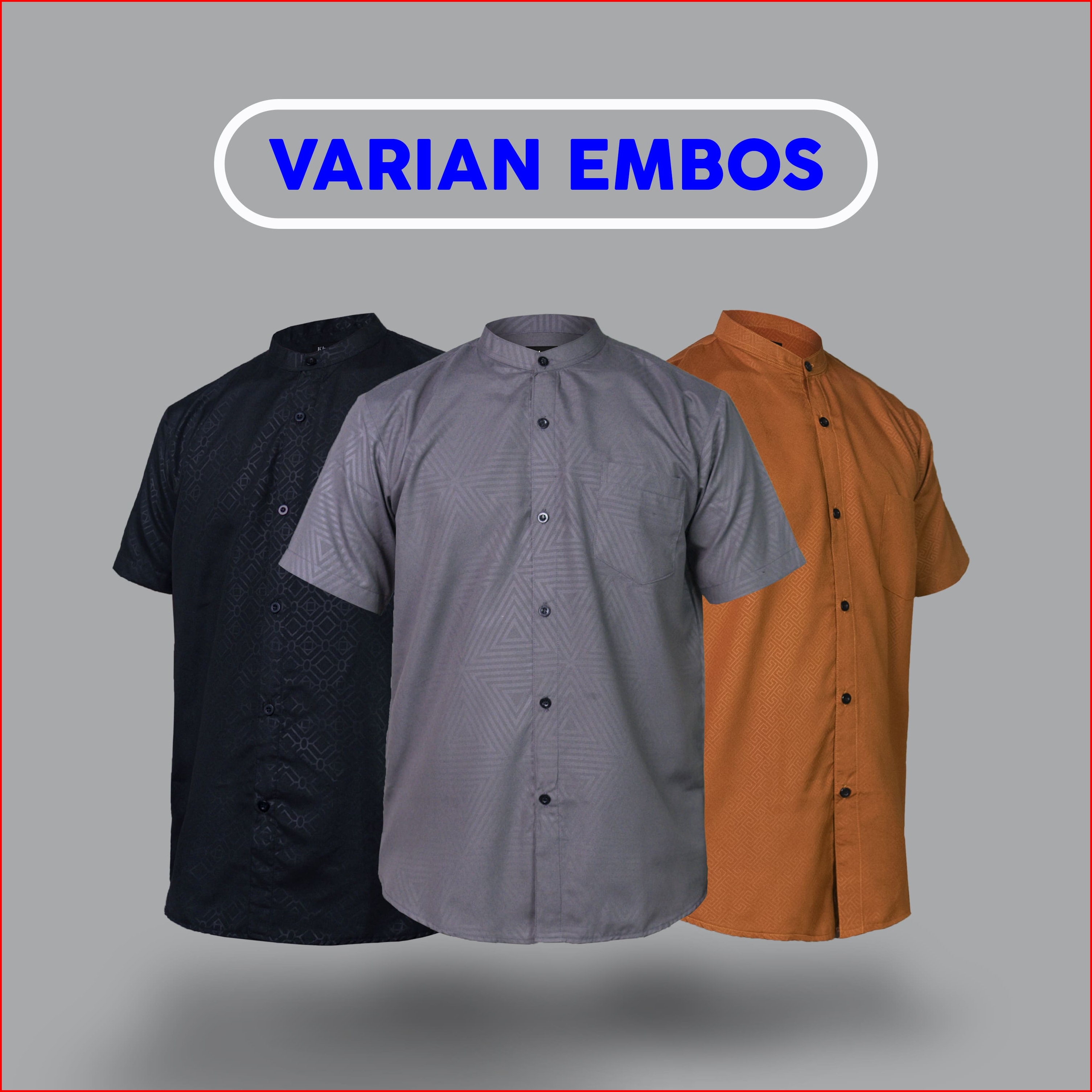Khaf97 Koko Pria Lengan Pendek Kemko Polos Faizan Gabungan Polosan Motif Embos