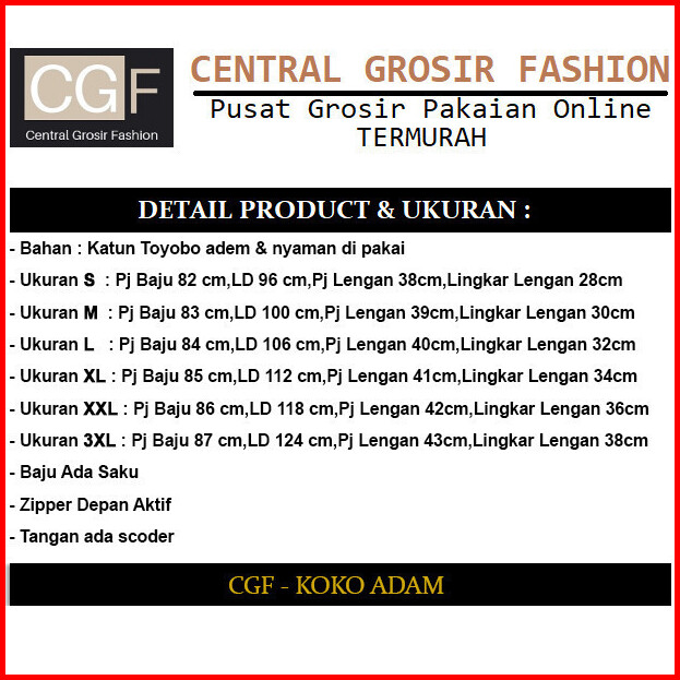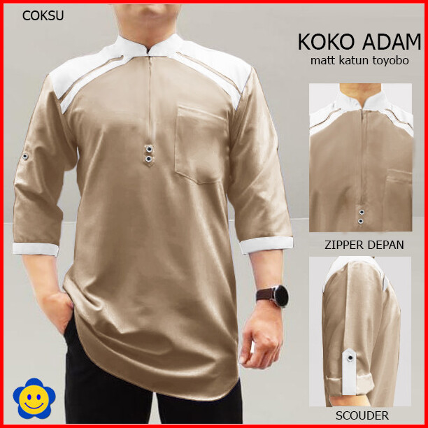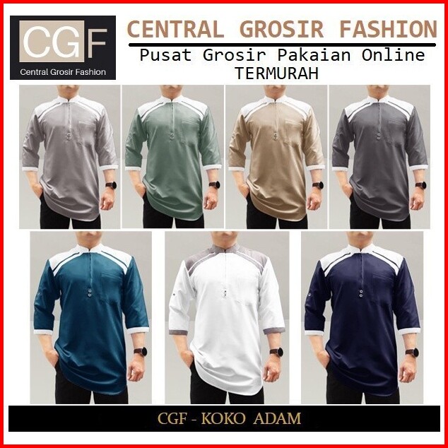 Koko Adam - Central Grosir Fashion Cgf - Ukuran S-3xl - Matt Katun Toyobo - Baju Koko Qurta Pria - Baju Koko Atasan Pria