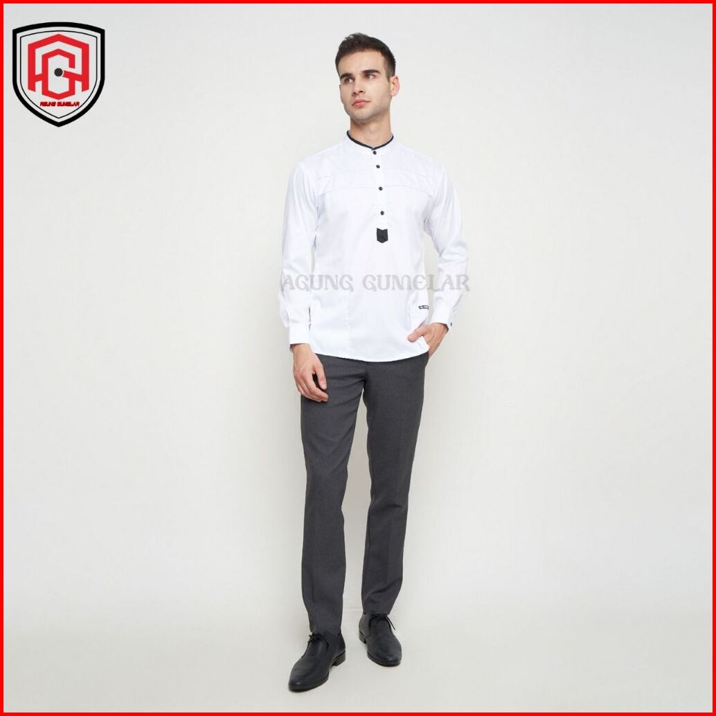 Baju Koko Pria Abha Lengan Panjang Motif Jagat Warna Putih