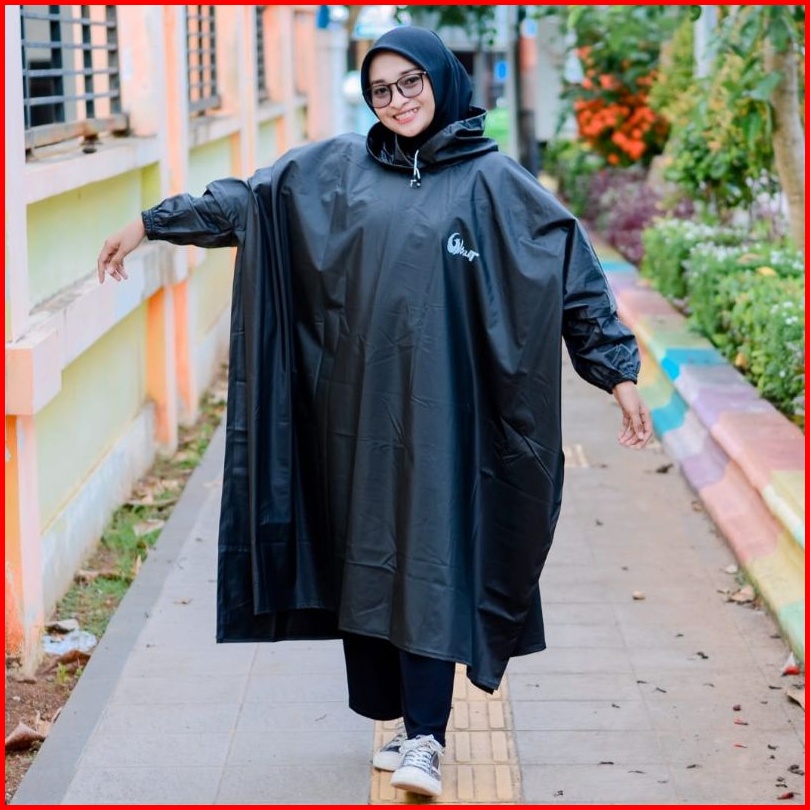 Jas Hujan Ponco Lengan Bahan Karet Anti Rembes Raincoat Motor