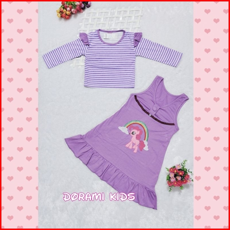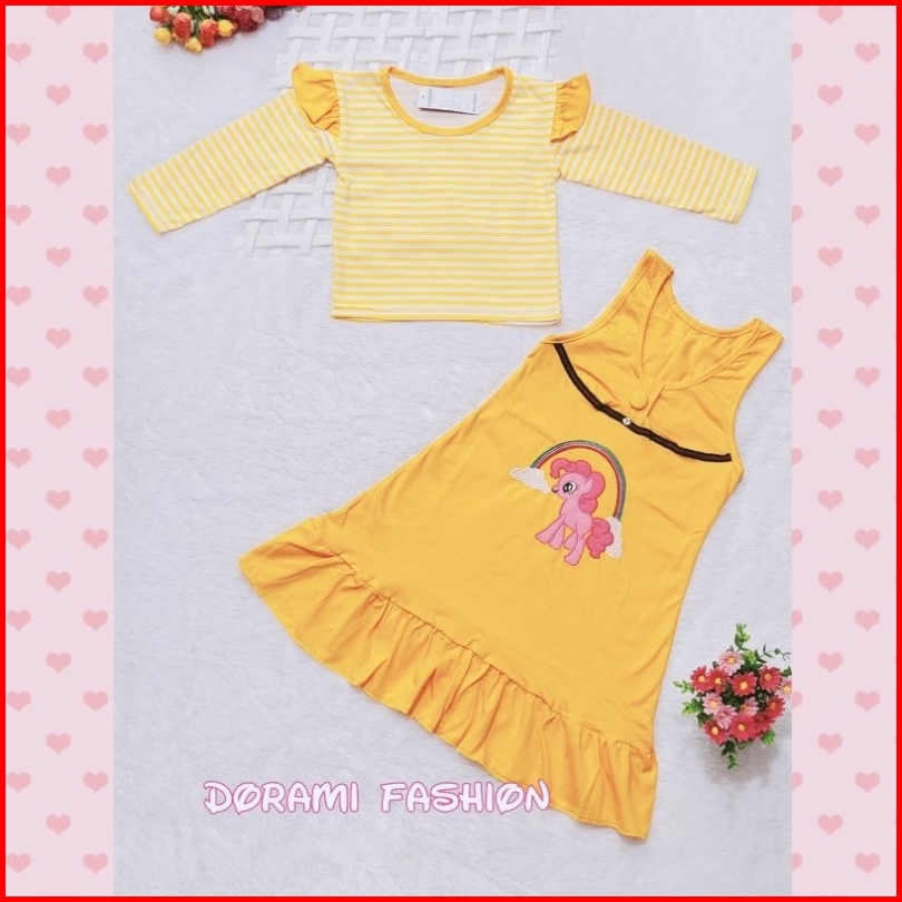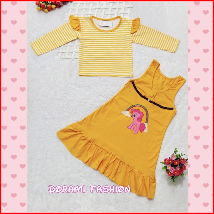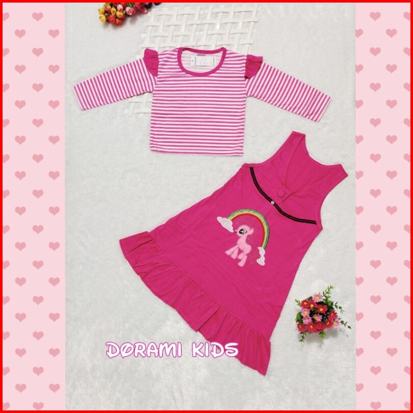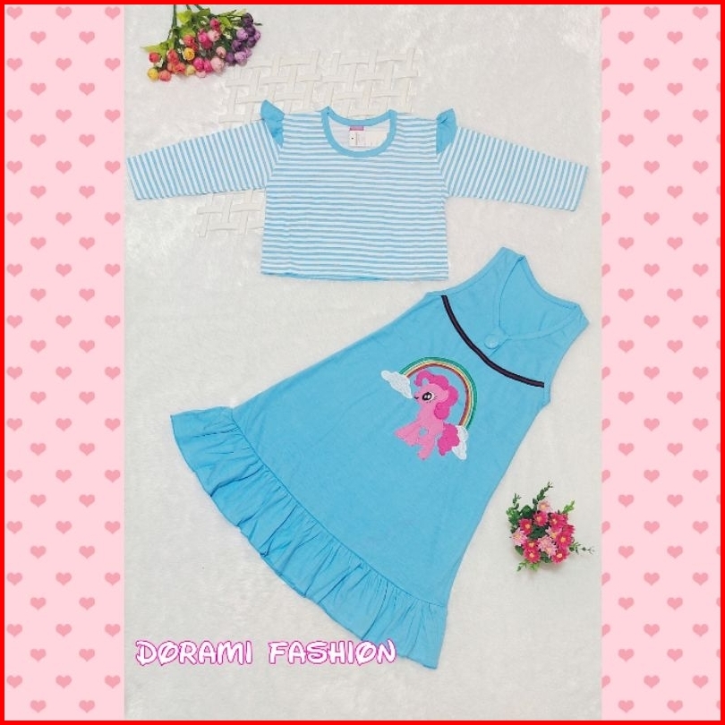 Dress Overall Gamis Anak Usia 1-8 Tahun Bordir Kuda Pony Unicorn Pakaian Anak Perempuan Lebaran 925