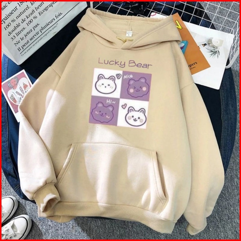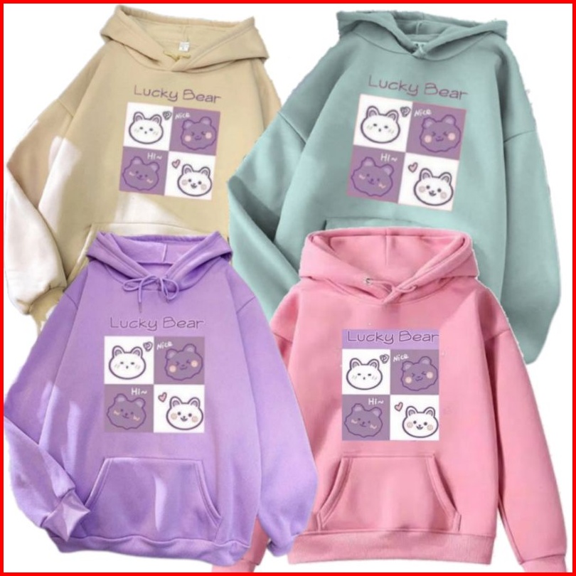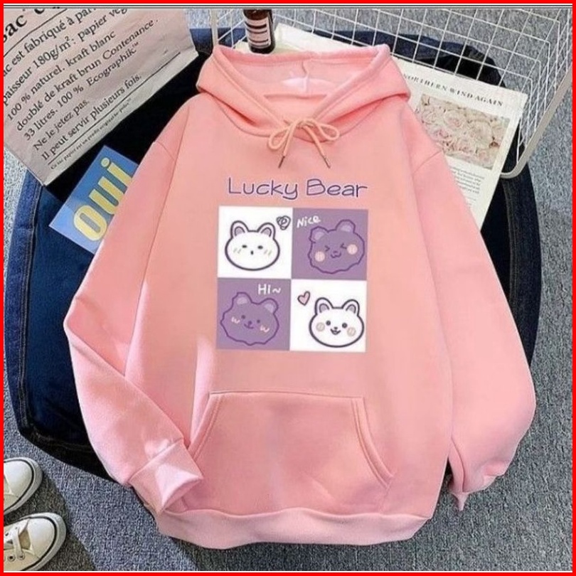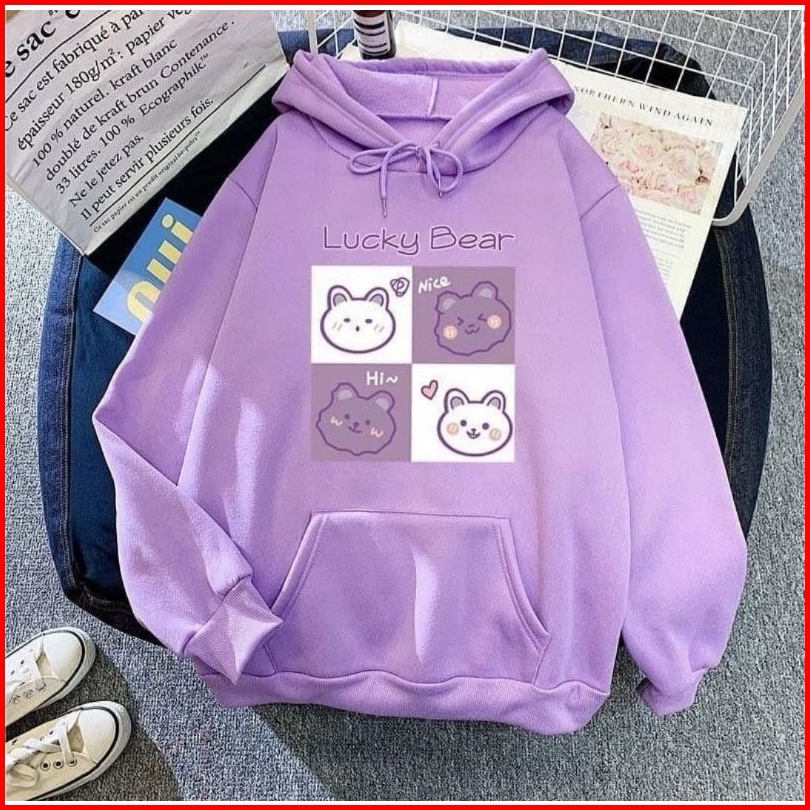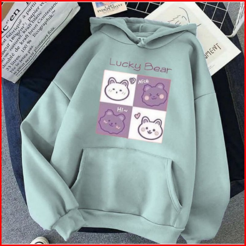 Jaket Sweater Hoodie Anak Lucky Bear Usia 5-12 Tahun