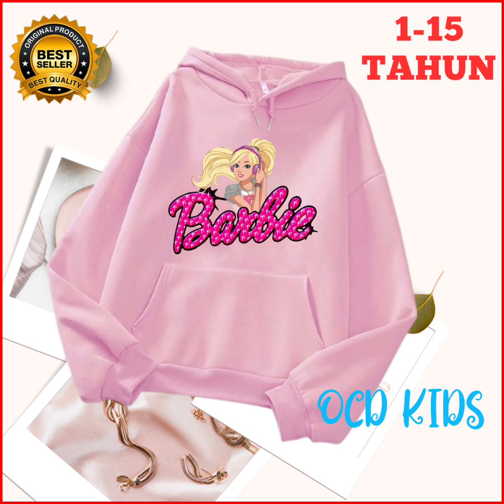 Gratis Nama Sweater Hoodie Anak Usia 1-15 Tahun Jaket Anak Motif Barbie Orang Luchu