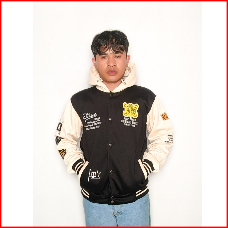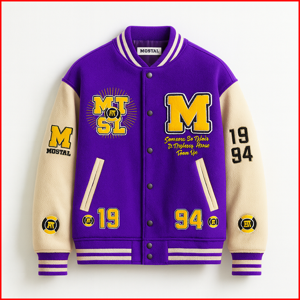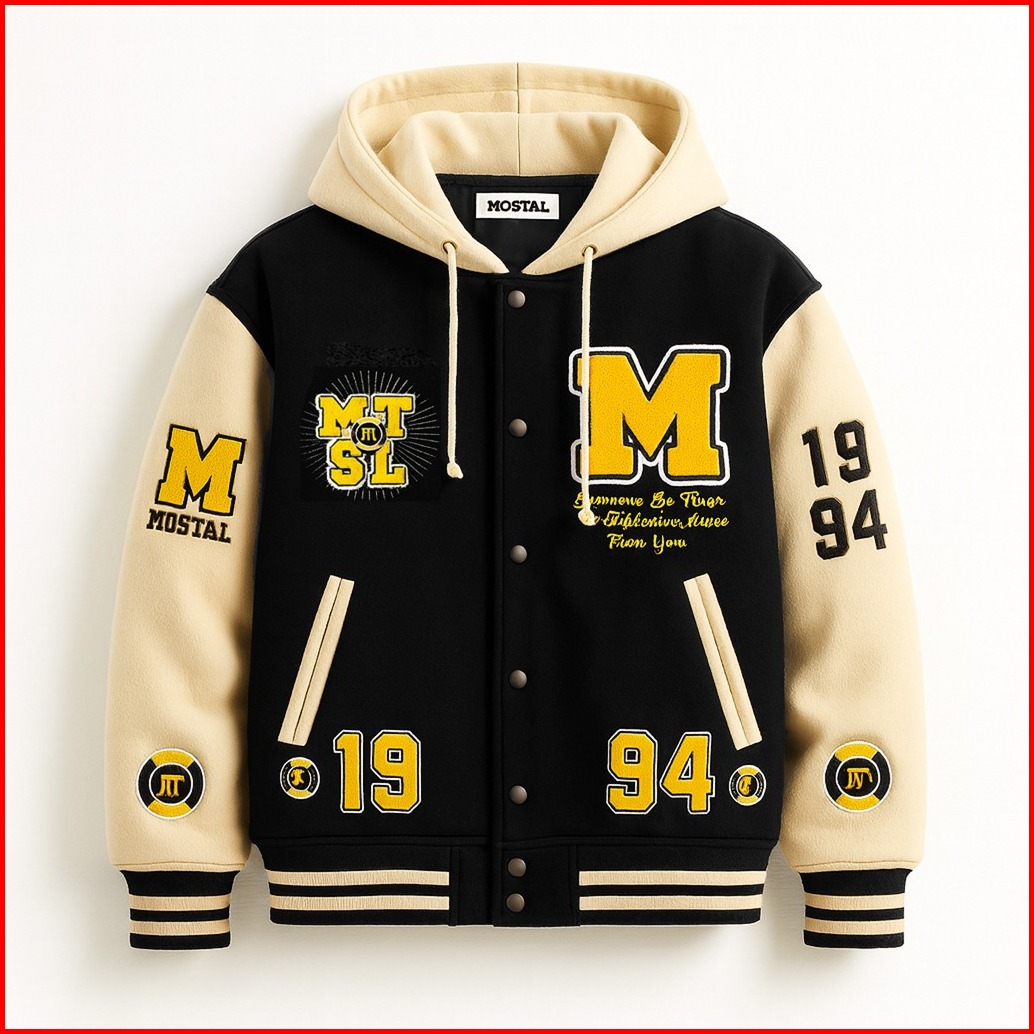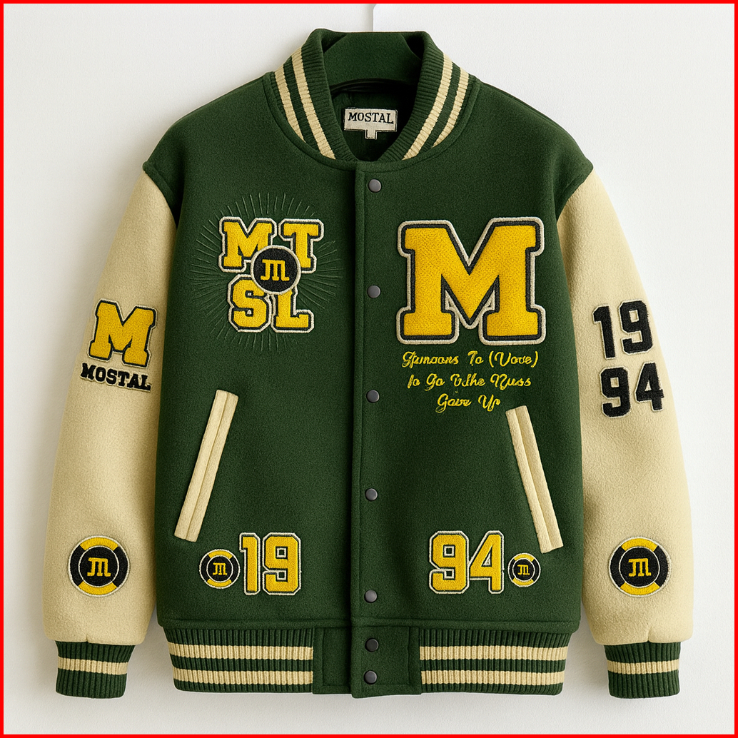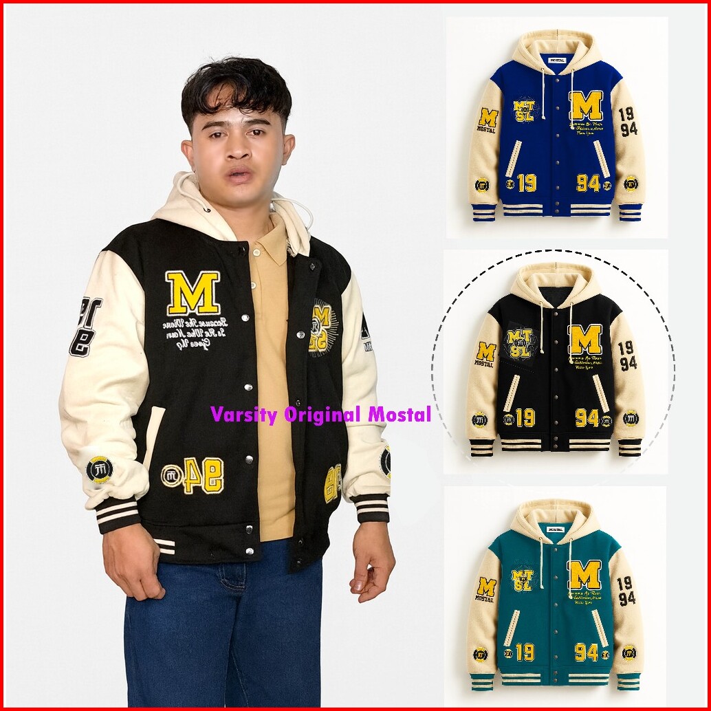 Mostal Jaket Varsity Baseball Original Unisex Vintage Fleece Tebal Bordir Casual Size Mxxl