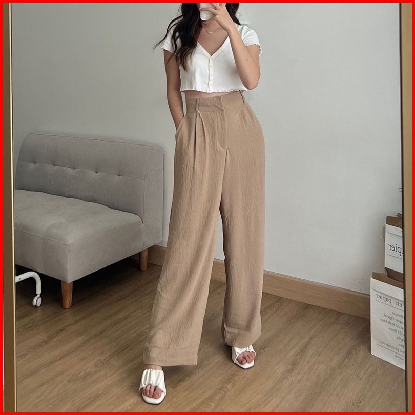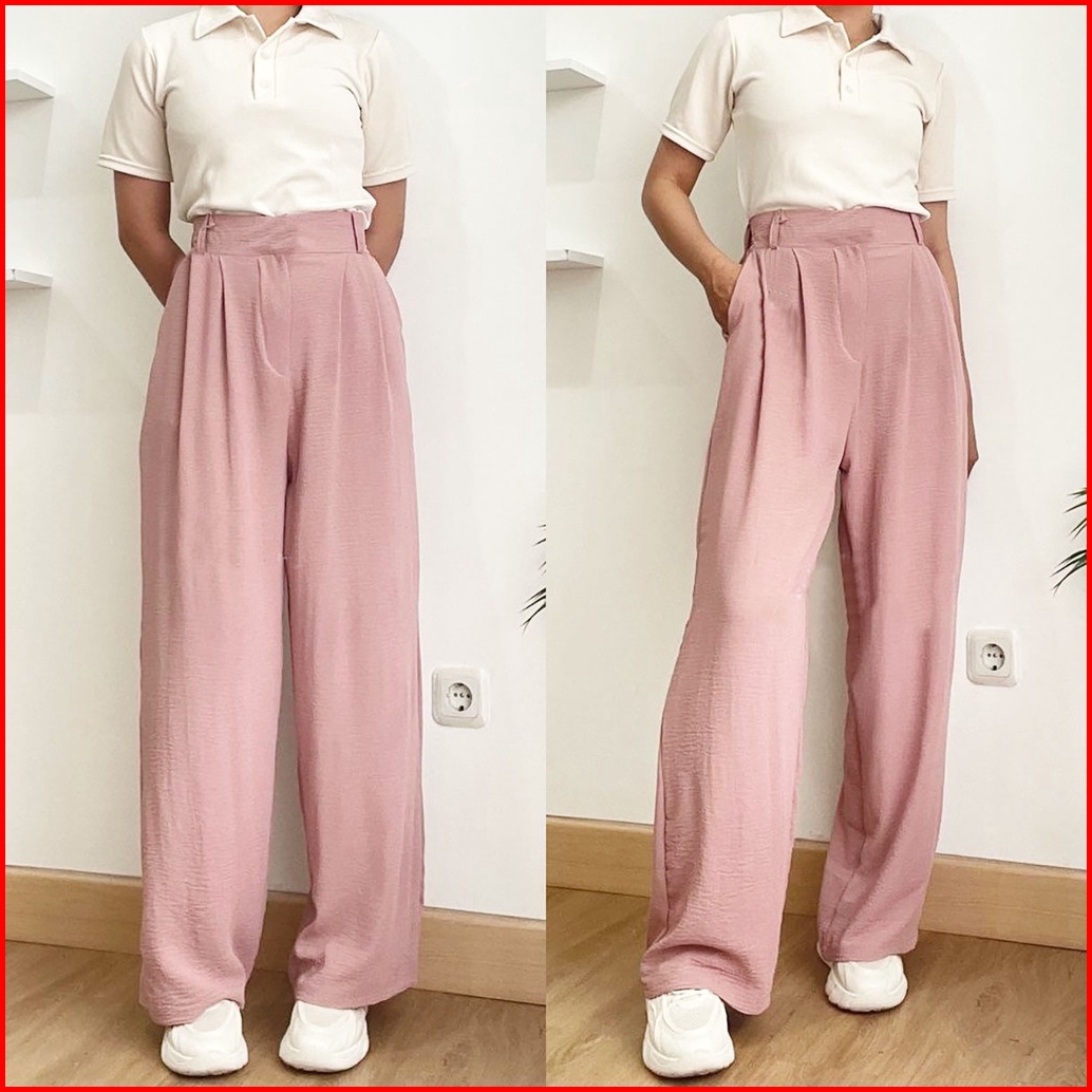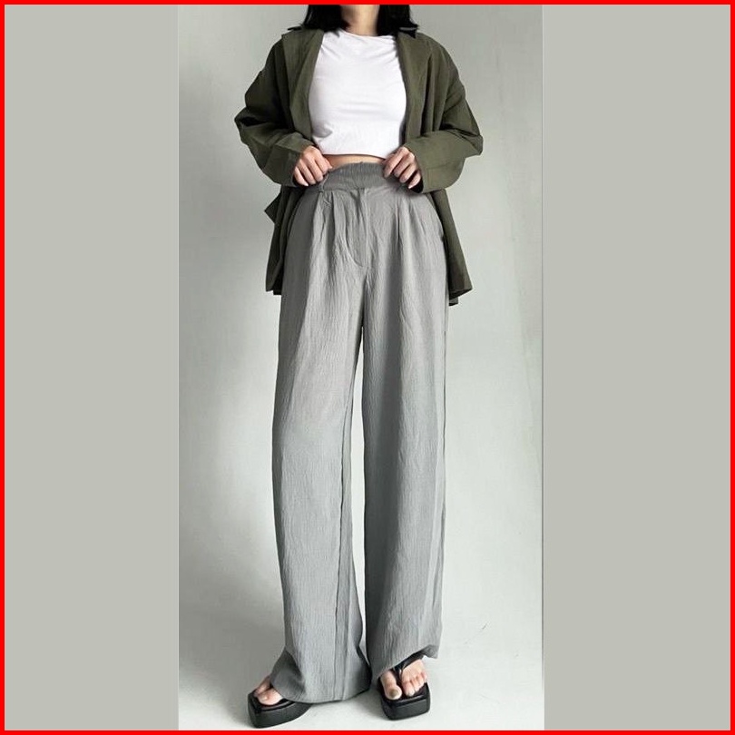 Celana Kulot Crinkle Airflow Highwaist Wanita Loose Cullote Pant Polos