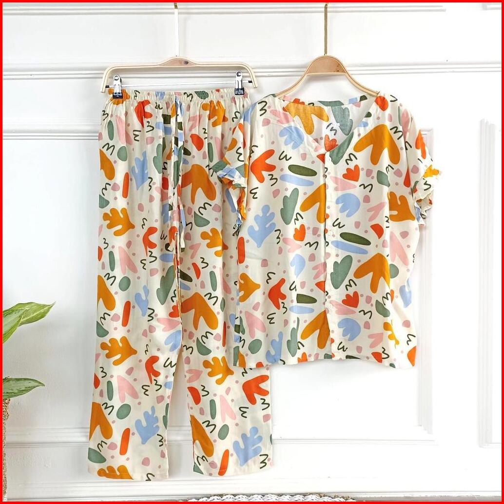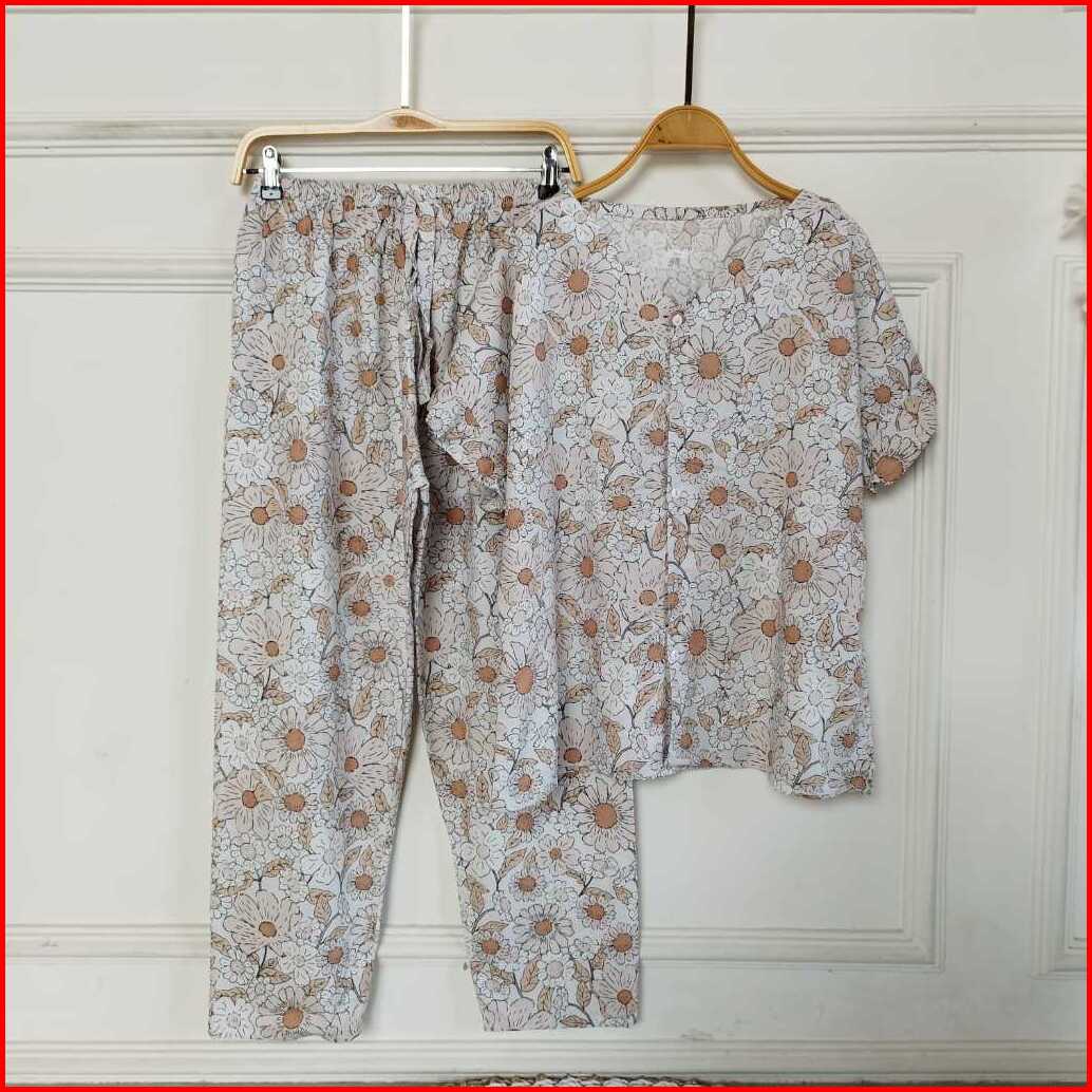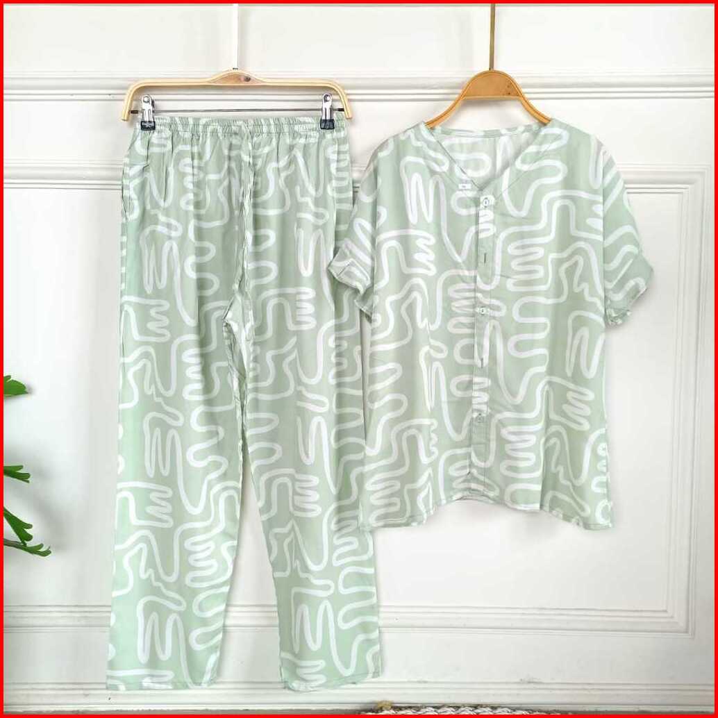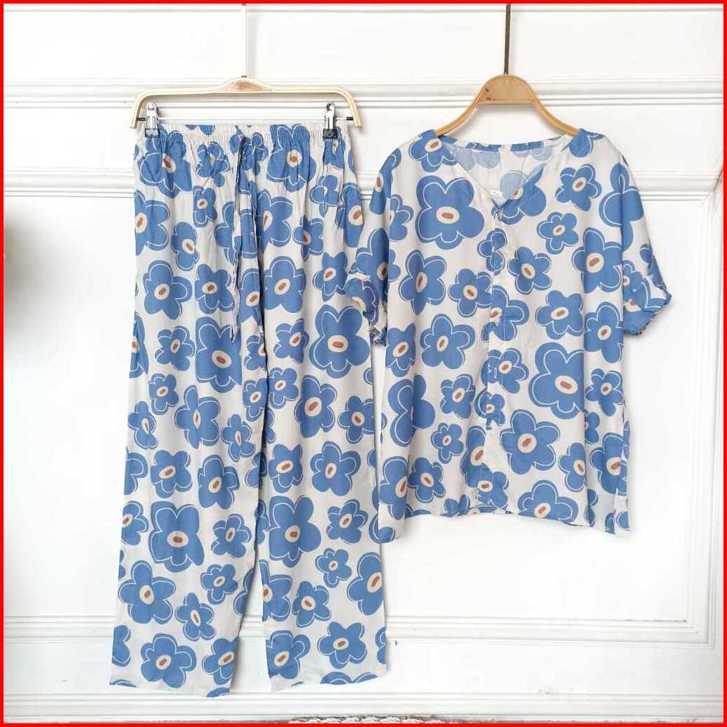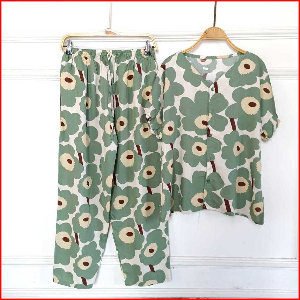 Piyama Kancing Hits Piyama Kancing Busui V-neck Piyama Rayon Homewear