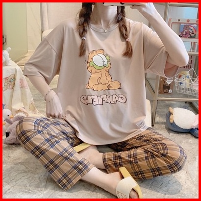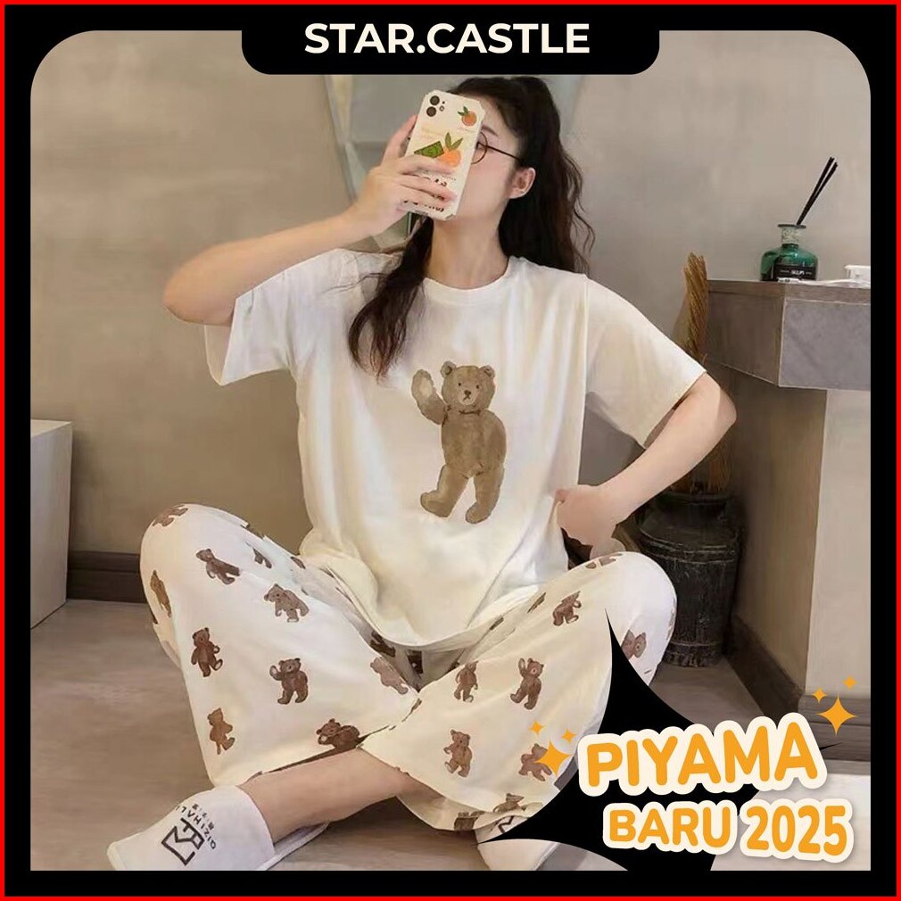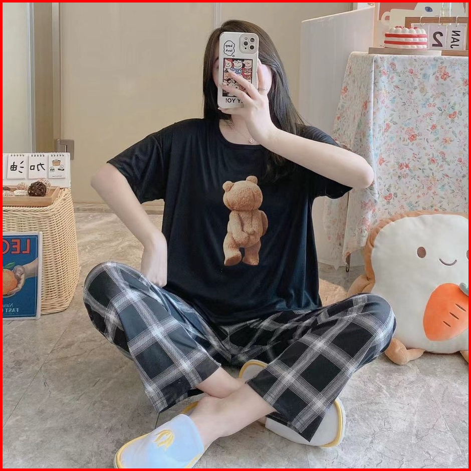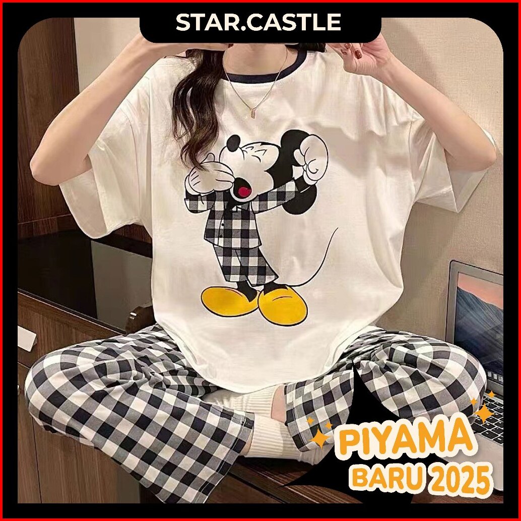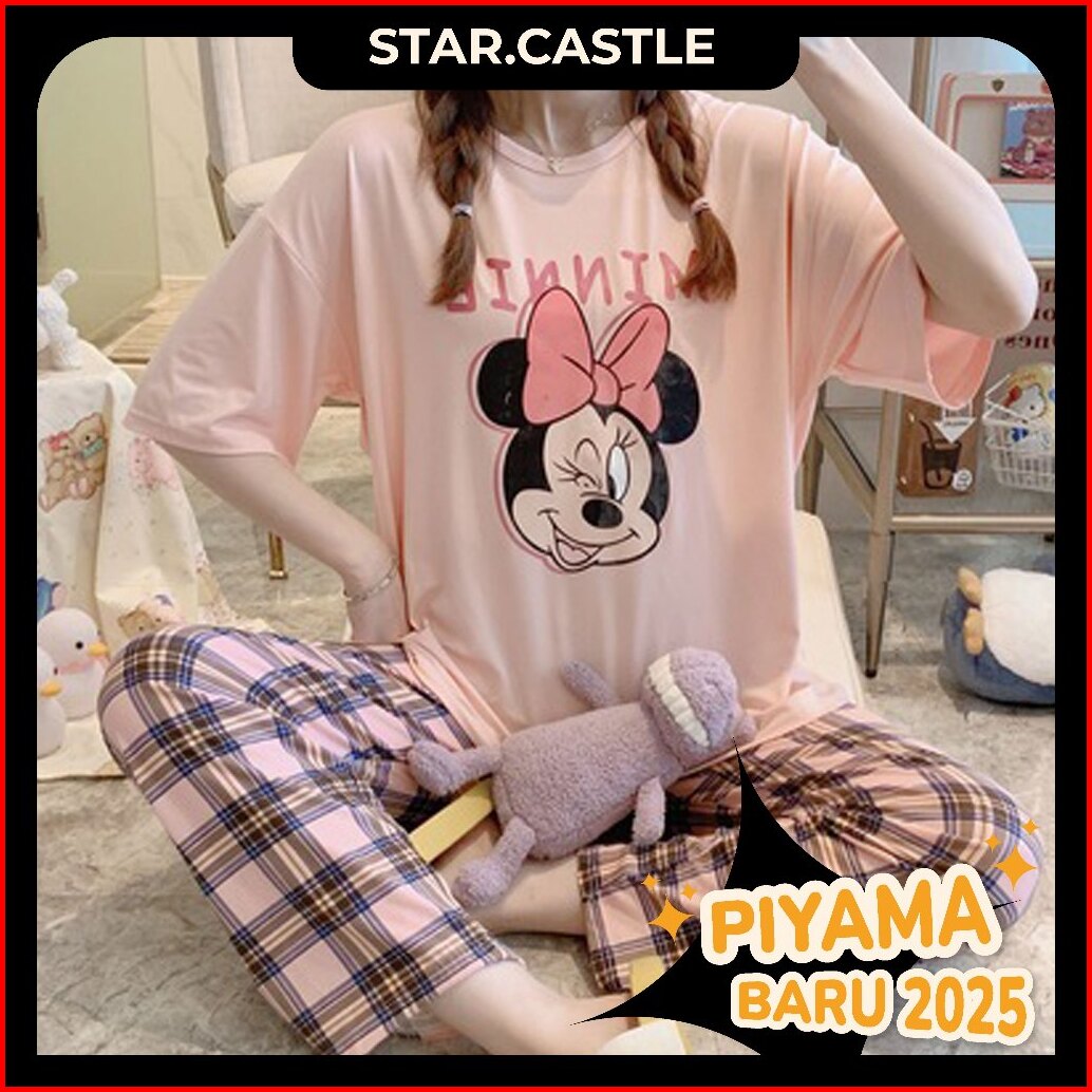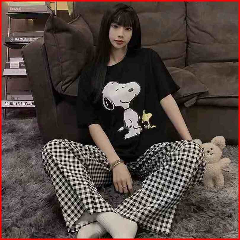 Set Piyama Setelan Baju Tidur Wanita Oversize Bahan Kaos Lengan Pendek Dewasa Motif Karakter Kartun