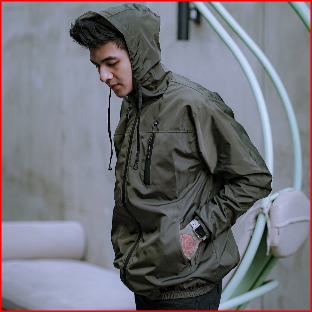 Jaket Cowok Parasut Pria Waterproof Hoodie Anti Air Outdoor Parasit Distro Keren Murah Terbaru