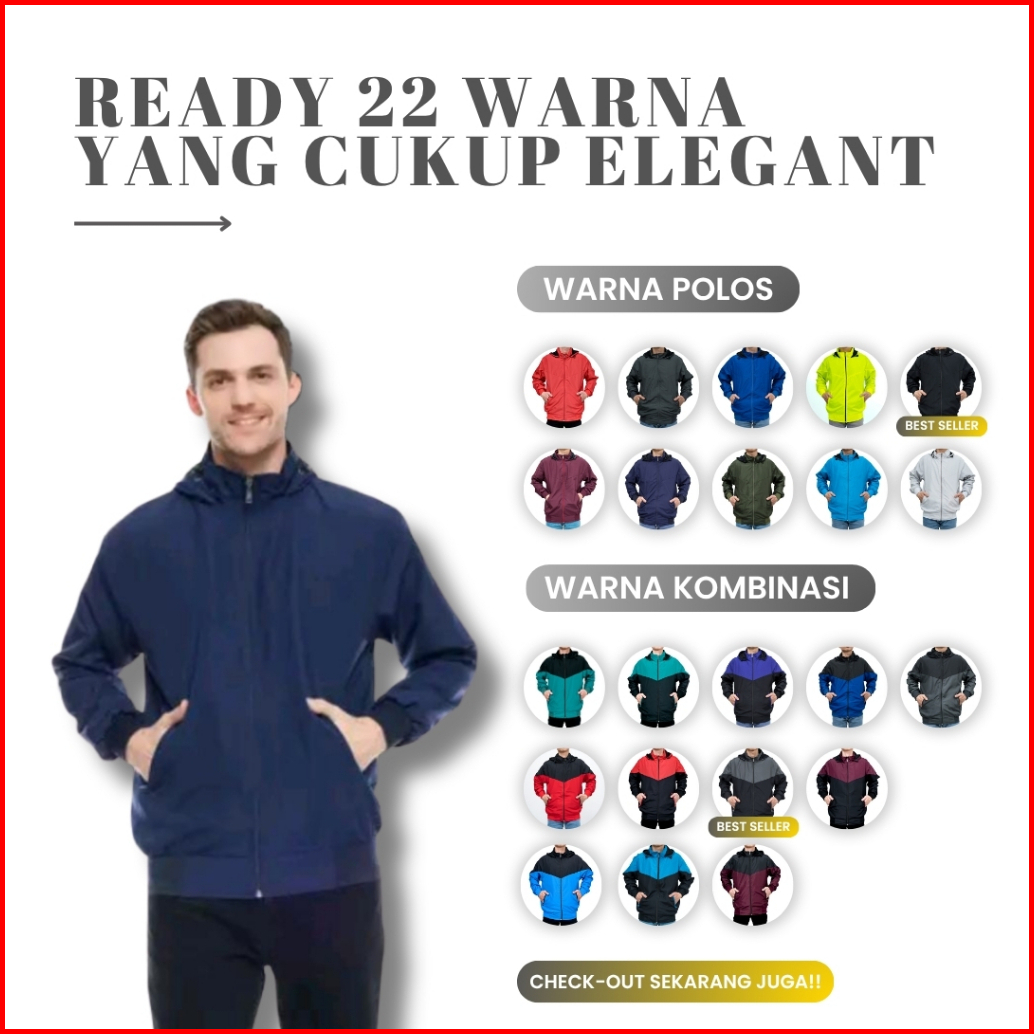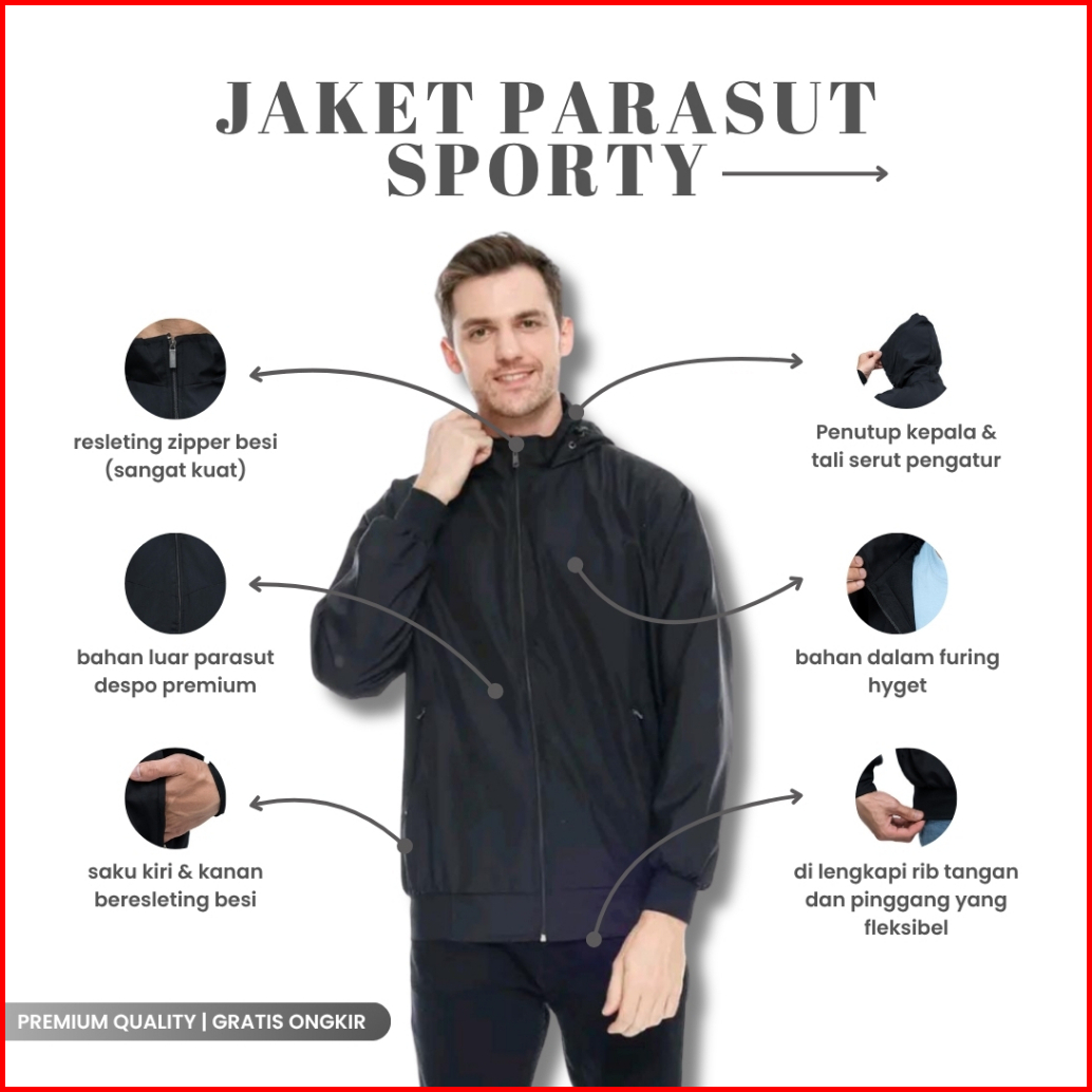 Indo - Jaket Parasut Polos Olahraga Sporty Jogging Jacket Olahraga Lari Pria Wanita Hitam