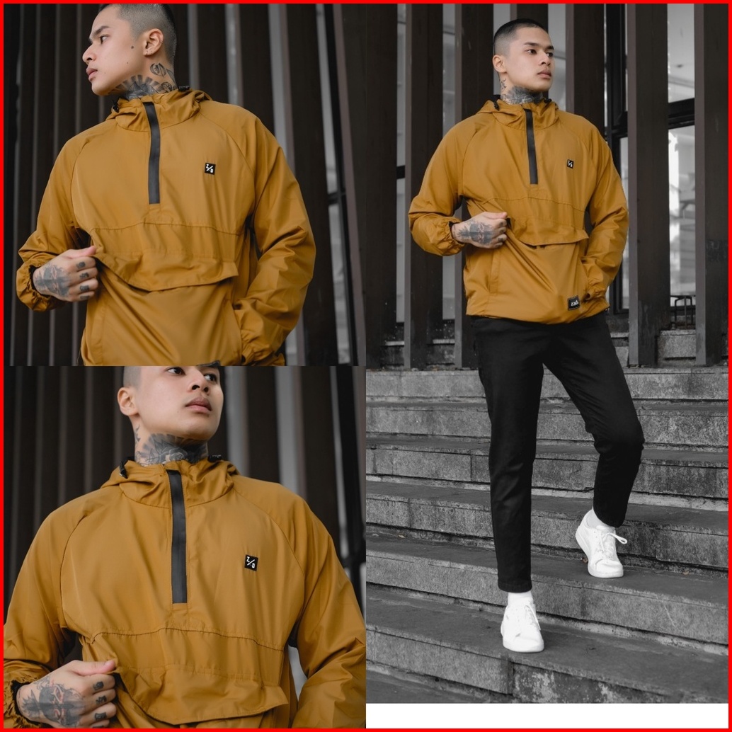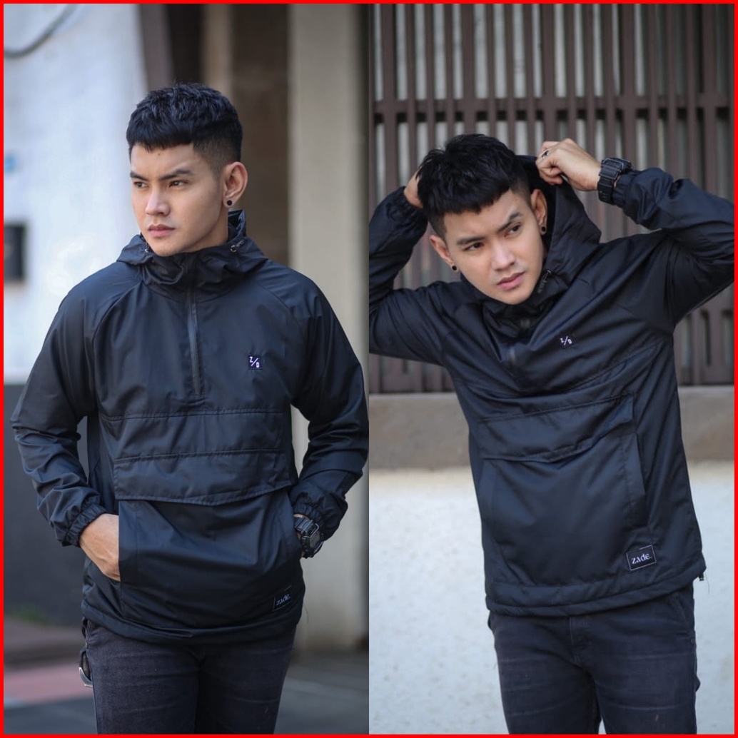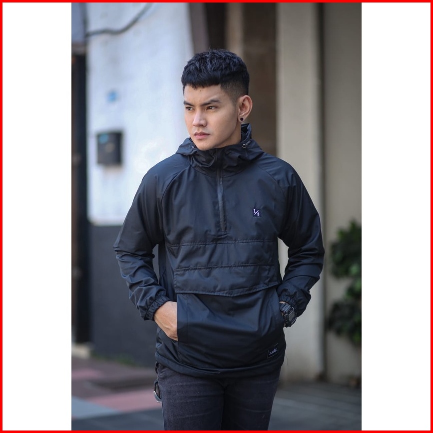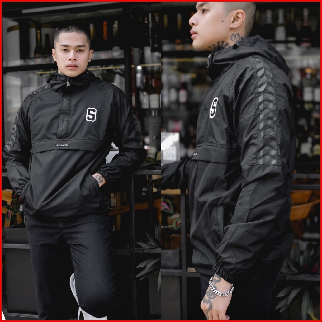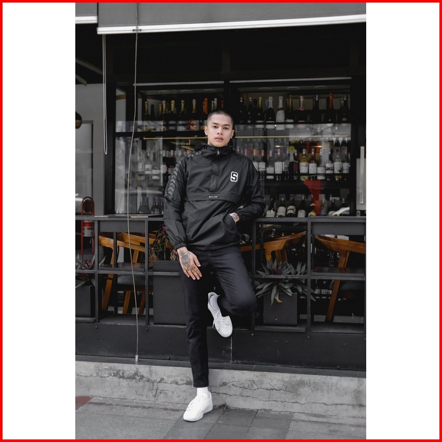 Jaket Parasut Cagoule Waterproof Windbreaker Denmark Logo Black Slvhx