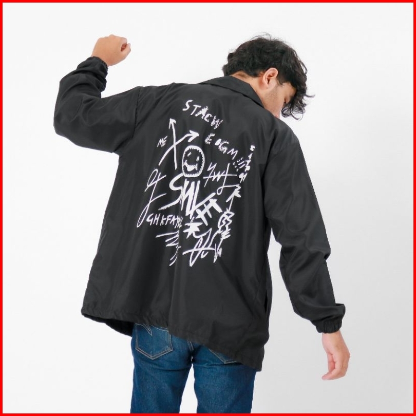 Ozeysx Jaket Coach Emoji Stacw Smile Me Parasut Taslan Dewasa Pria Wanita