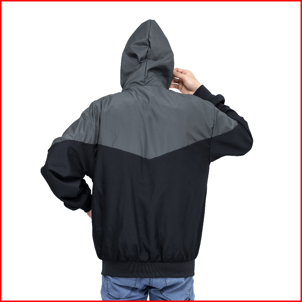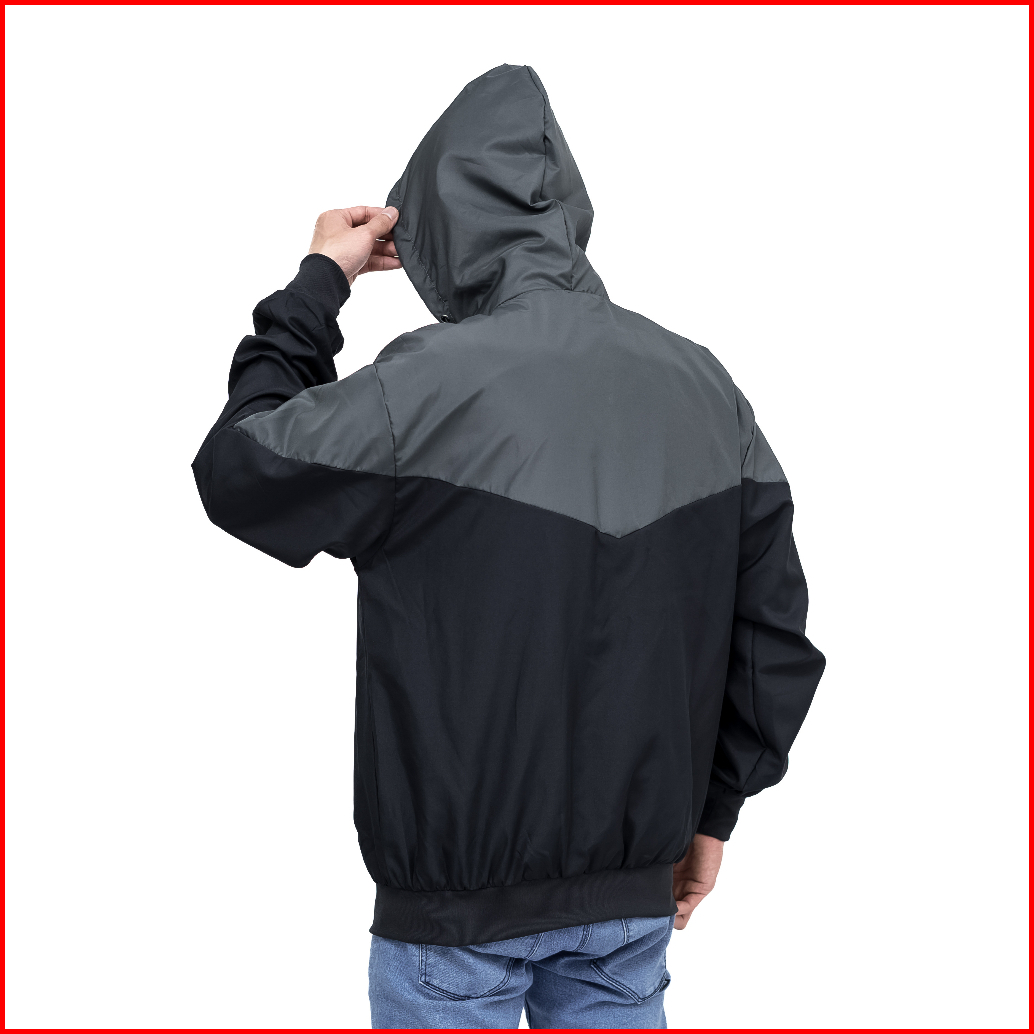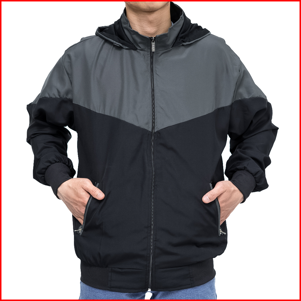Go Shopping - Jaket Olahraga Windbreaker Kombinasi Pria Wanita Jacket Parasut Lari Abu Tua Hitam