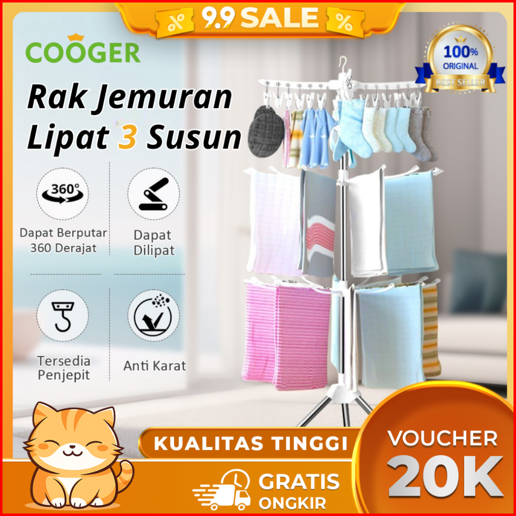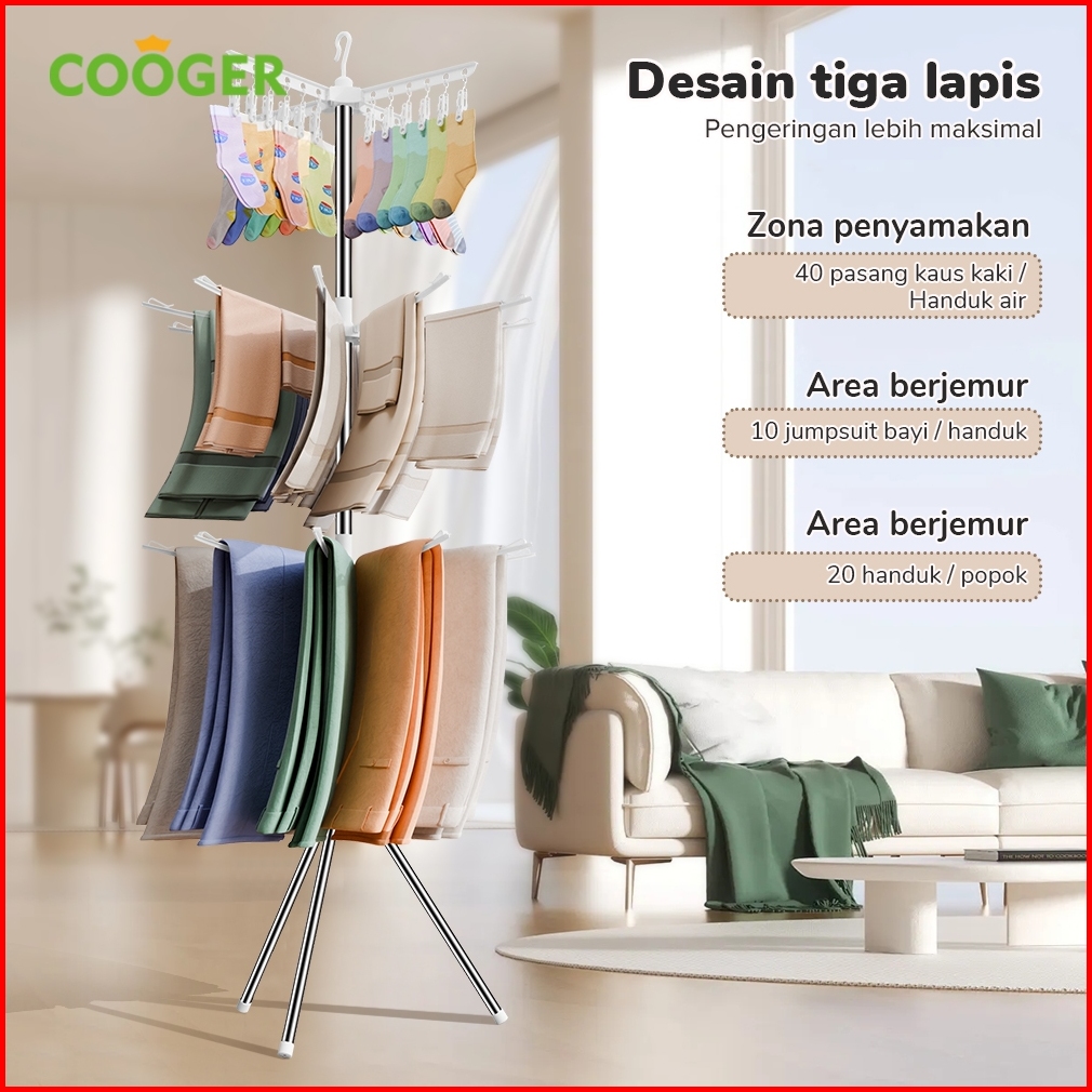 Cooger Rak Jemuran 24 Klip Jemuran Baju Bayi Handuk Celana Dalam Stainless Steel 3 Tingkat Serbaguna Pakaian Jilbab Cela