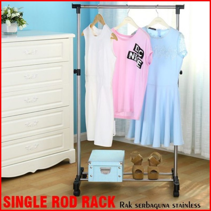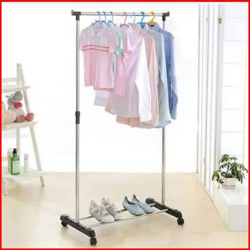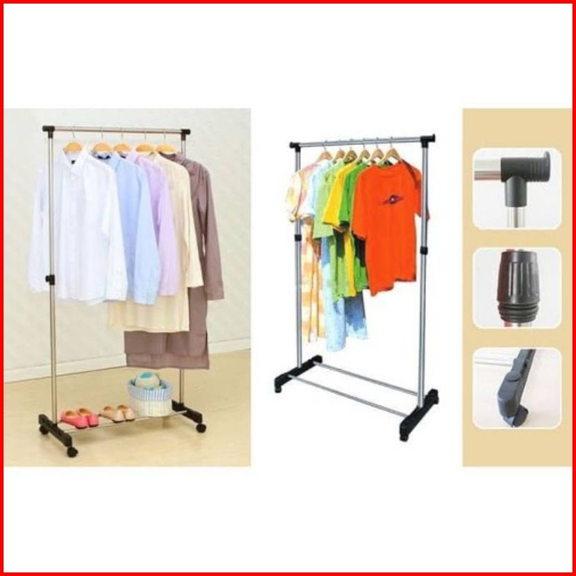 Stand Hanger Single Stainless Murah Rak Serbaguna Dengan 4 Roda Jemuran Baju