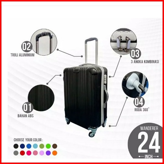 Big Sale Koper Polo Murah 24 Inch 4 Roda Berputar 360 Abs Hardcase Koper Umroh Travel Tas Wanita- Original - Murah - Kop