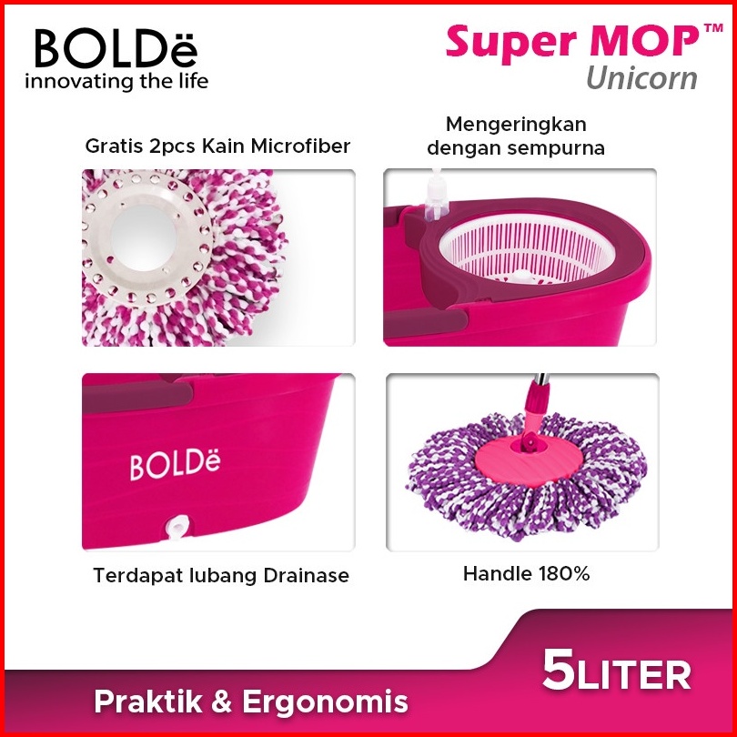 Bolde Super Mop Unicorn Alat Pel Lantai Bonus Refill Kain Pel Microfiber