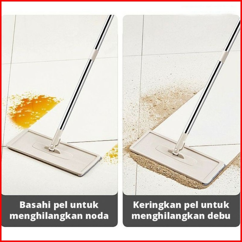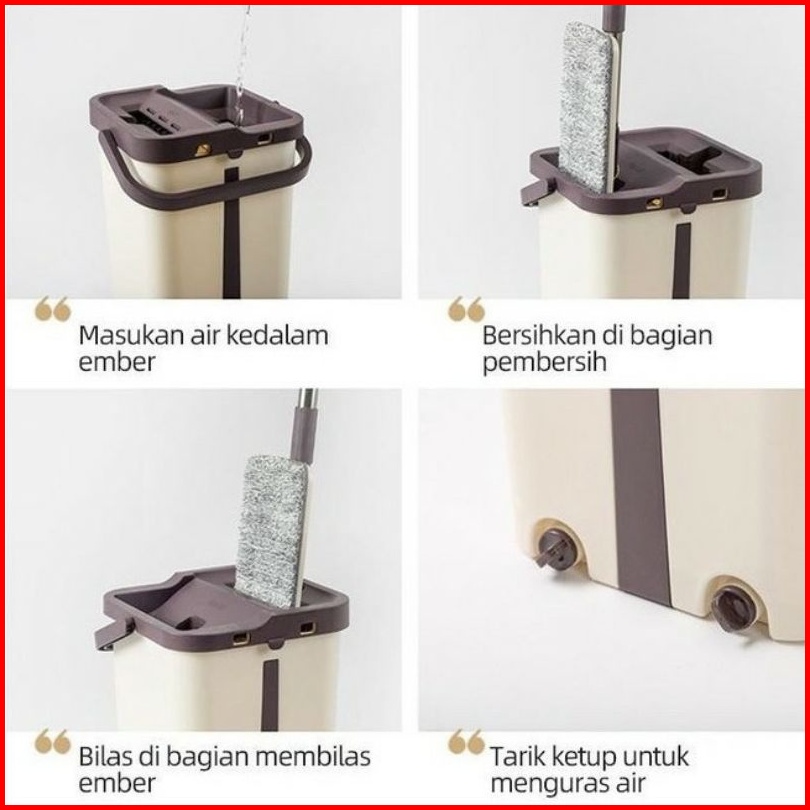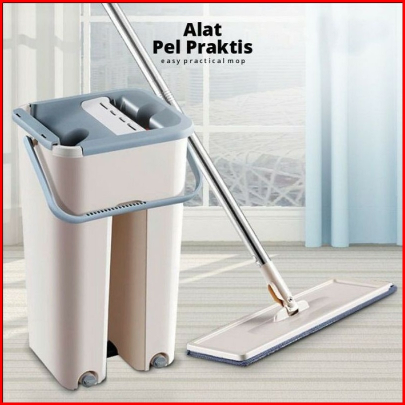 Celoviashop Alat Pel Tuoba Lantai Praktis Ultra Flat Mop Briny Super Pembersih Ember 2 Sekat Dry Wash Magic Microfiber O