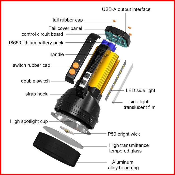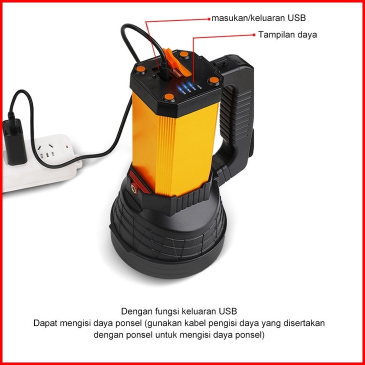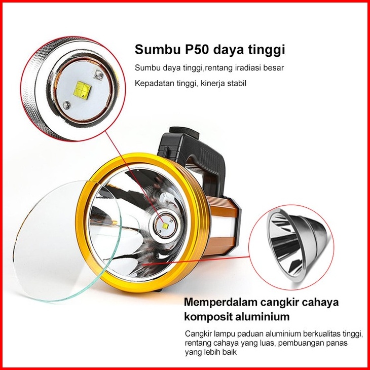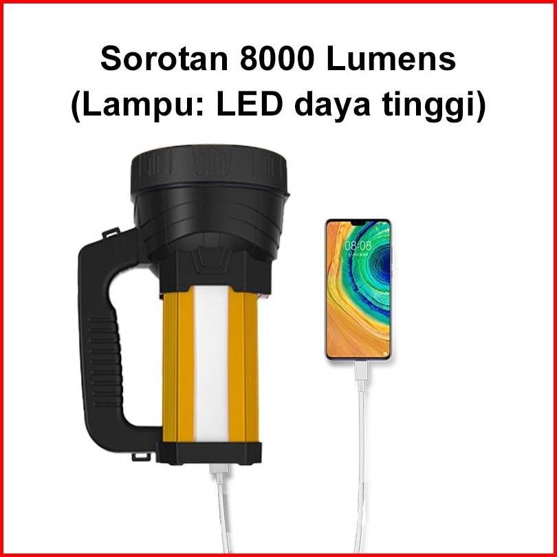 Senter Led Super Terang Jarak Jauh 3 Mode Senter Camping Jumbo Multifungsi 48w Ipx6 Waterproof Power 8000 Lumens