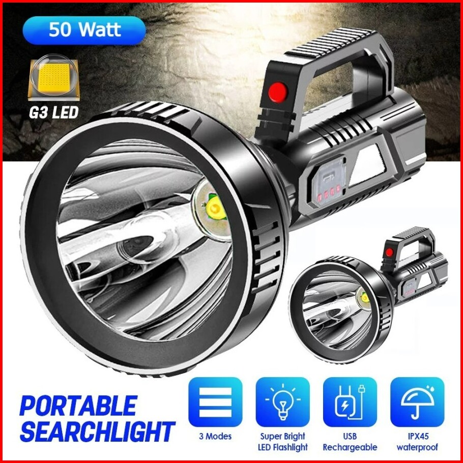 Senter Jarak Jauh Super Terang Waterproof Ipx6 Usb Rechargeable 50w