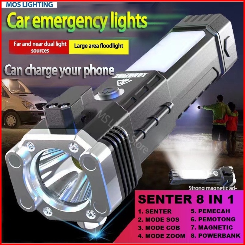 Ready Stok Senter Multifungsi 8 In 1 Powebank Pemecah Kaca Dsb Mudah Dibawa Kemana Aja