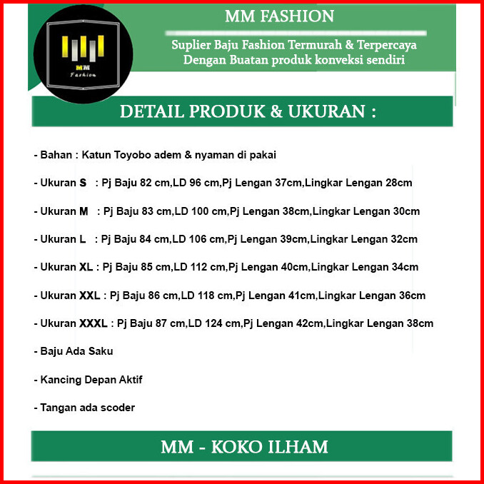 Koko Ilham - Mm Fashion Mm - Ukuran S-3xl - Matt Katun Toyobo - Baju Koko Qurta Pria - Baju Koko Atasan Pria - New Arriv
