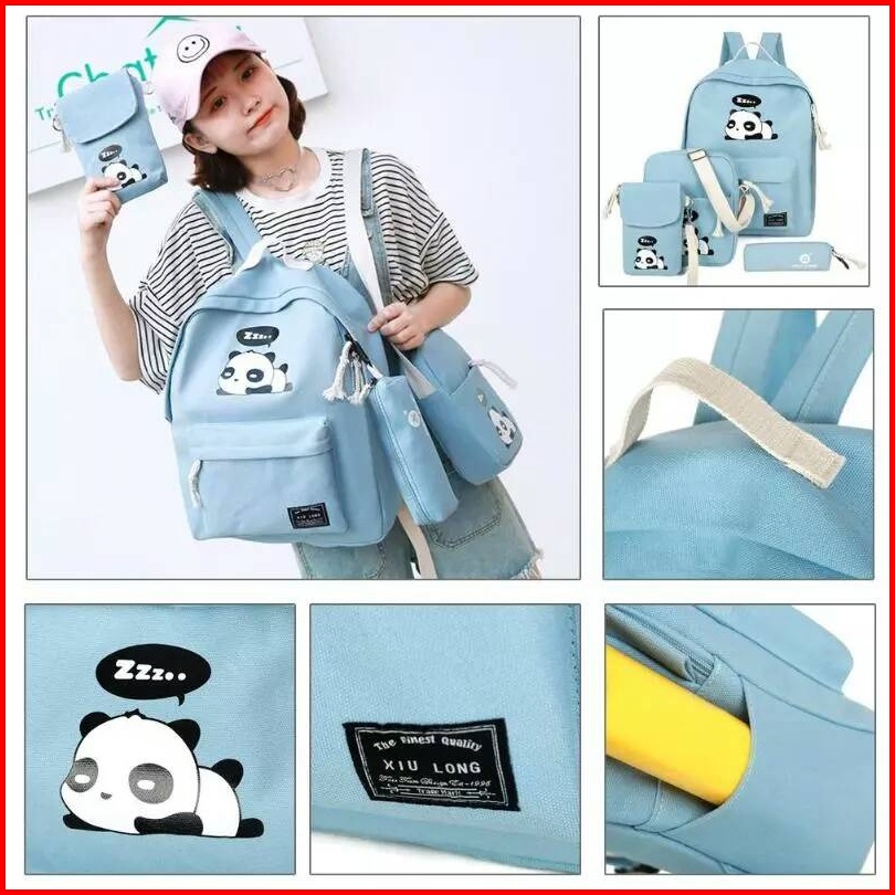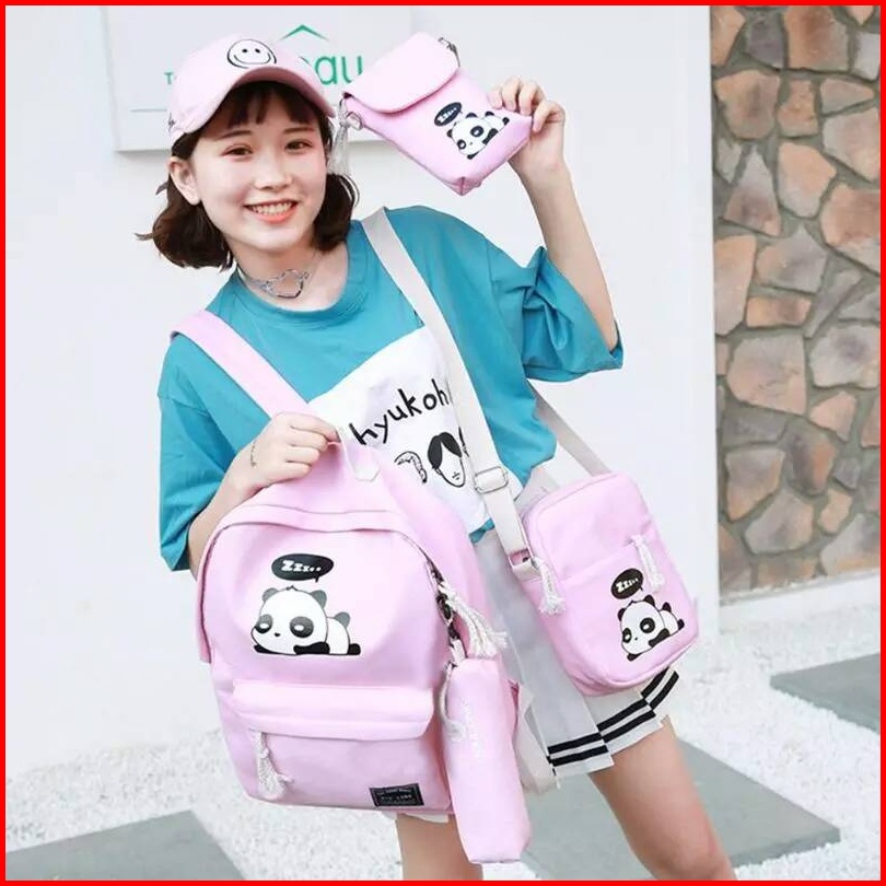 Majestybags - Beli 1 Dapat 4 Tas Anak Set 4 In 1 Motif Panda Tas Ransel Anak Sekolah Sd Smp Backpack Anak Sekolah Unisex