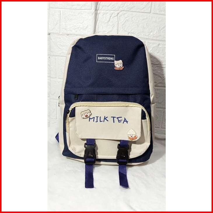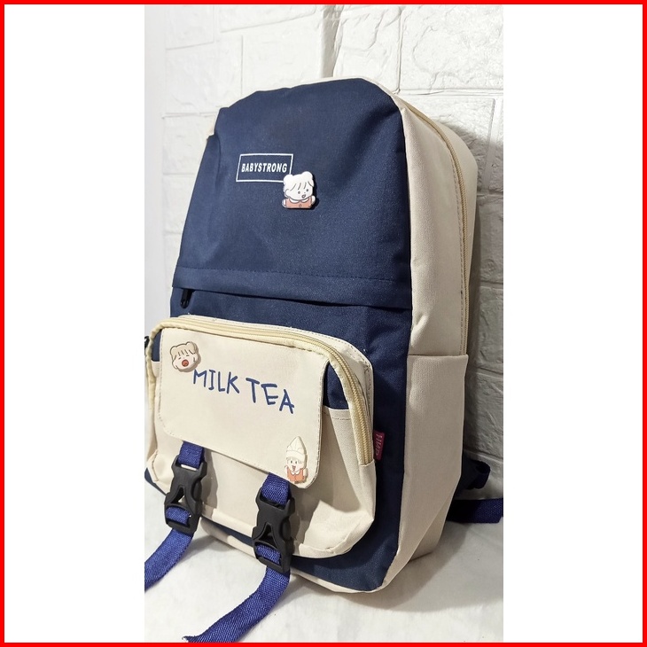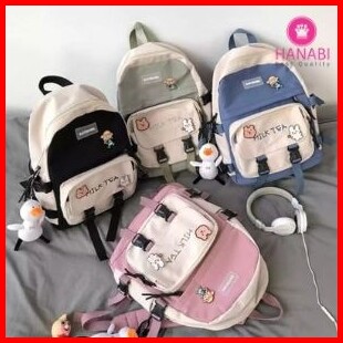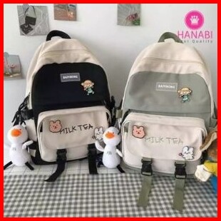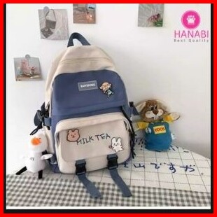 Hanabi - Tas Ransel Sekolah Milk Tea Include Patch Bros Tas Kekinian Tas Casual