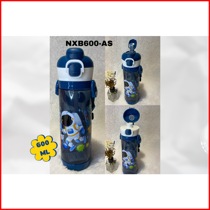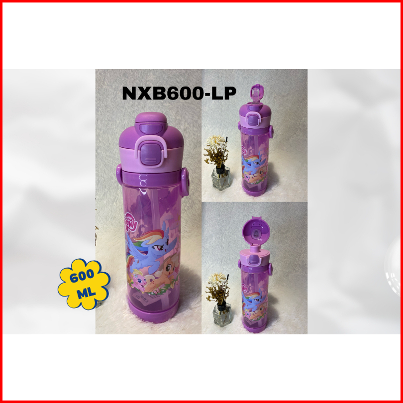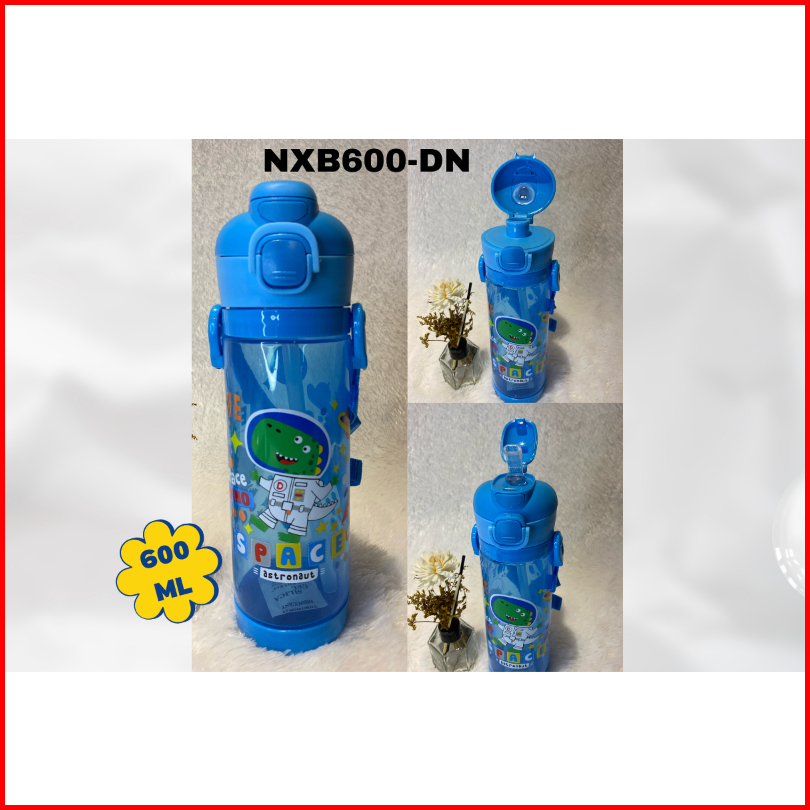 Botol Minum Anak Lucu 600ml Botol Air Tutup 2in1 Motif Karakter Nxb600