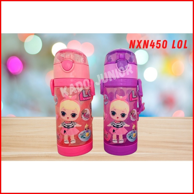 Botol Minum Anak Karakter 450ml Botol Minum Bahan Plastik Sedotan Tali Panjang Bpa Free Nxn450