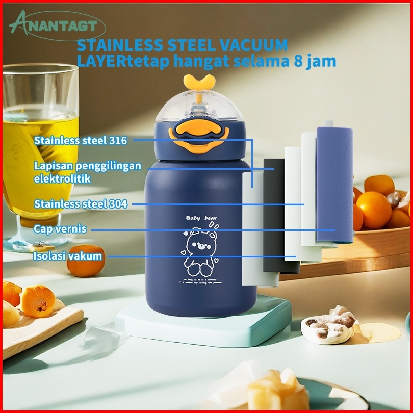 Letyeah Anantagt Botol Minum Thermos Anak Panas Dingin 350ml Thermos Bayi Anak Stainless Steel Water Bottle Cangkir Vacu